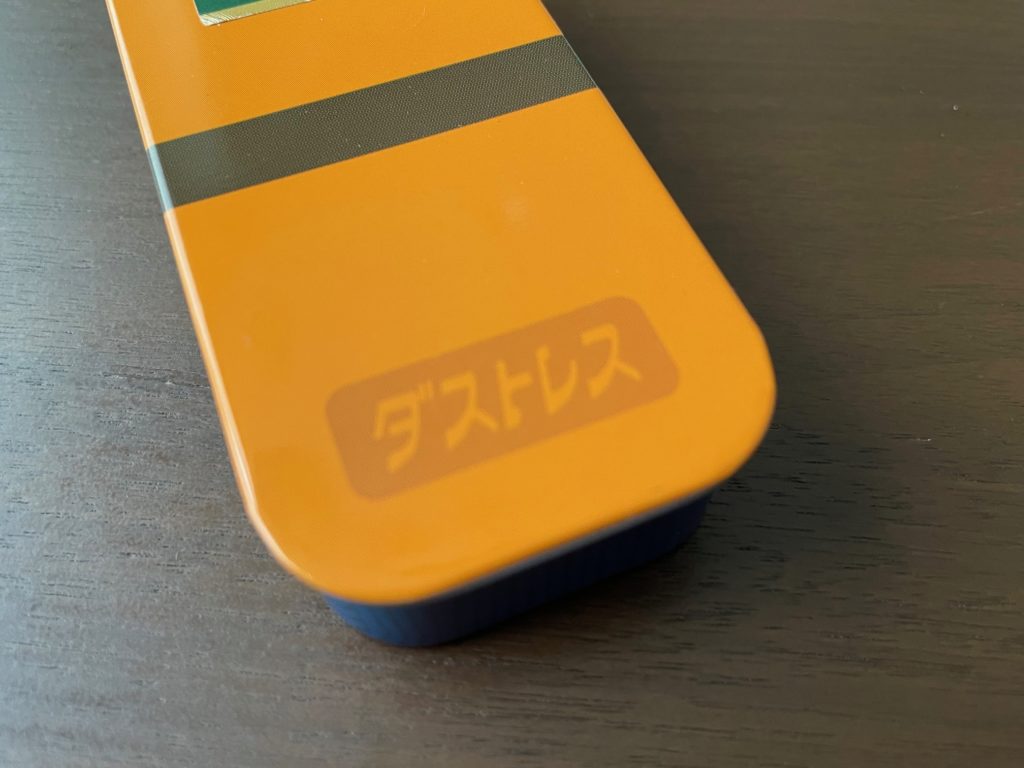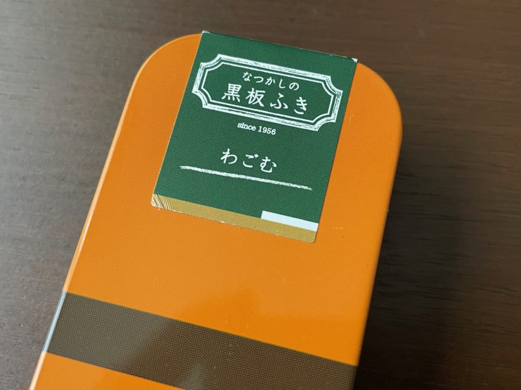 じゃん! こちらです! うーん、見た目がすてきです、黒板拭きですね!これは楽しそうですよ(^▽^)/ ちなみにこの「なつかしの黒板ふきシリーズ」ですが、ブリキ缶が4種類(ブリキ缶は全部同じもので中身が違う)、消しゴム、画面クリーナーが2種類、おひるねまくら、おどうぐばこが展開されています。勿論、すべて形状は黒板ふきです。