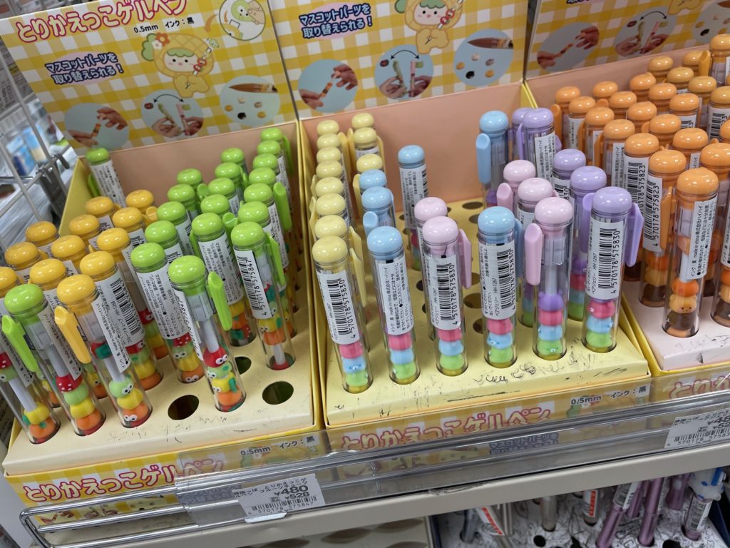 いろんなつぶつぶさんが存在しているので、友達同士で購入して交換などもできますね!8種類くらいありますので!アニマルベーカリーとかパンダ、にゃんこフレンズなど種類豊富です。お値段は税込み528円、インキはゲルインキ、芯は0.5mmです!
