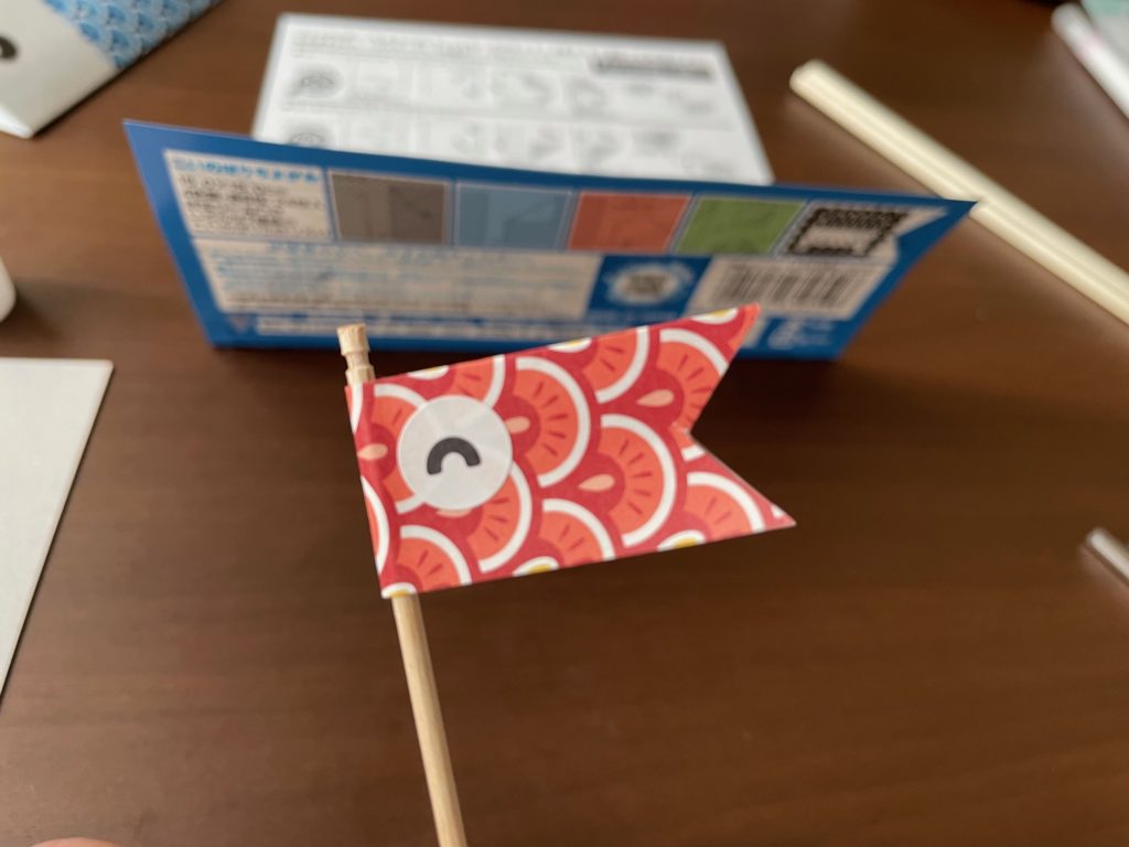 お好きな角度にハサミを入れたら、もうこいのぼりです。めっちゃ簡単です。
