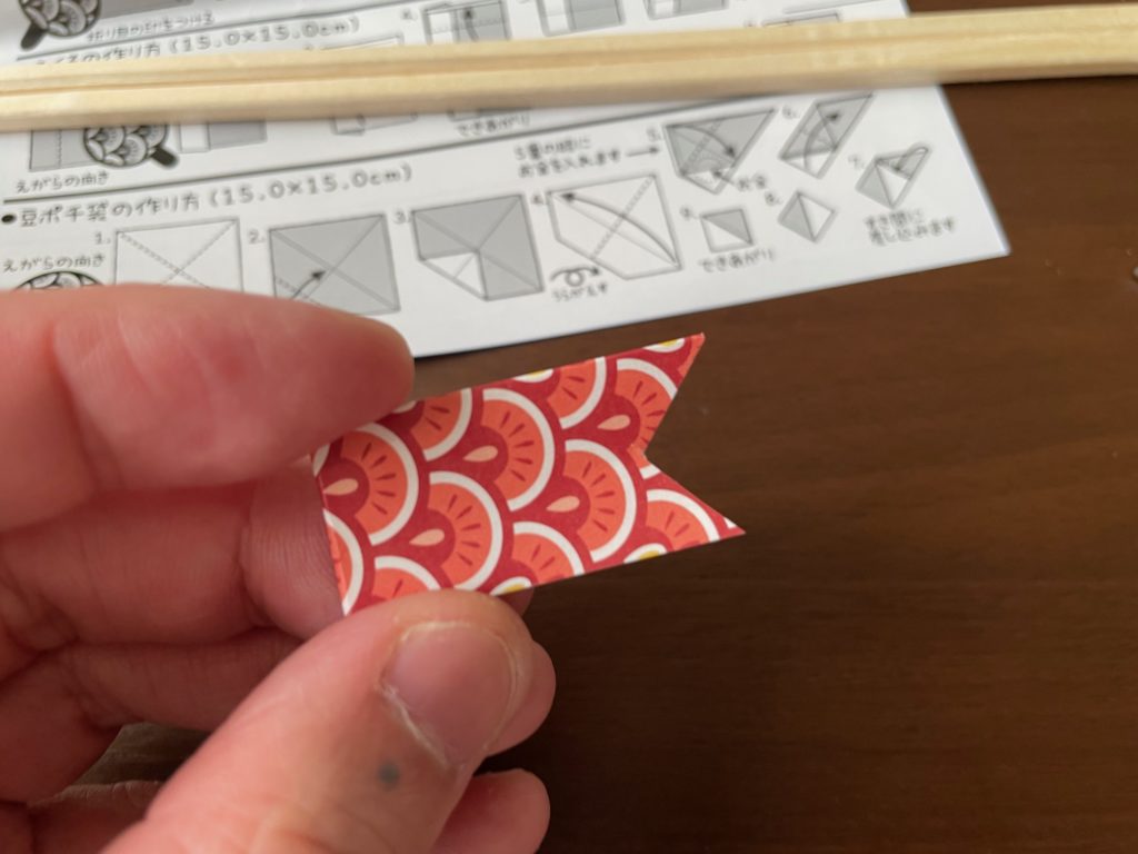 くるっと巻くようにおっていくと、こんな形になりました! これなら、私でもできる!