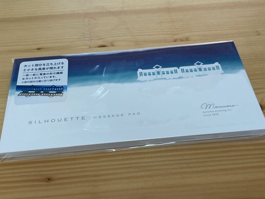 こちらは開封前。英語で表記されていますね「SILHOUETTE MESSAGE PAD」(シルエットメッセージパッド)とあります。シルエット=影法師、このようなスペルなのですね。開封前ですがすでに素敵なのが伝わってきます。