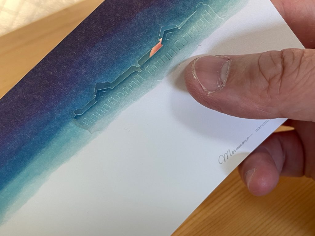 先に画像を見ていただきました。電車が浮かび上がってきました。でもまだフィニッシュではありません。これでも充分すてきです。もう説明いらないですよね。画像楽しんで下さい。
