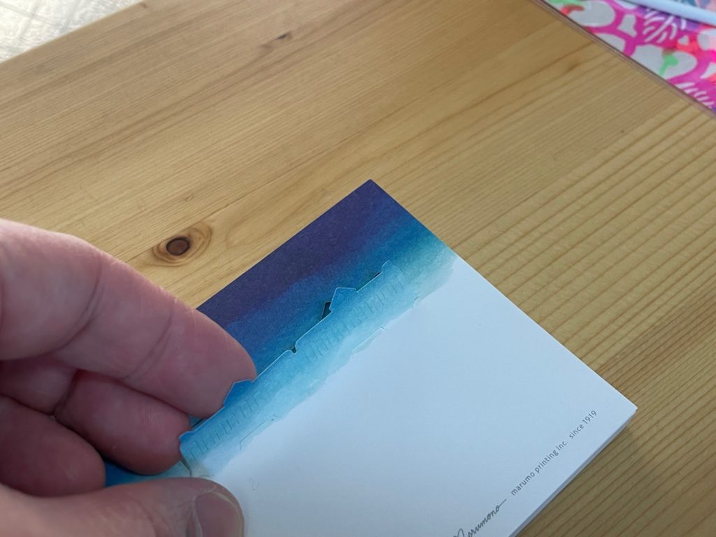 文房具を見て、ステキなデザインだなあ、とかかわいいなとか、思うことはしょっちゅうありますが、何と言いますか、この一筆箋、見ていてジーンときてます(笑)。大げさかもしれないですがちょっと感動しています。これにひとこと添えられたら、私でしたらめっちゃ嬉しいな!