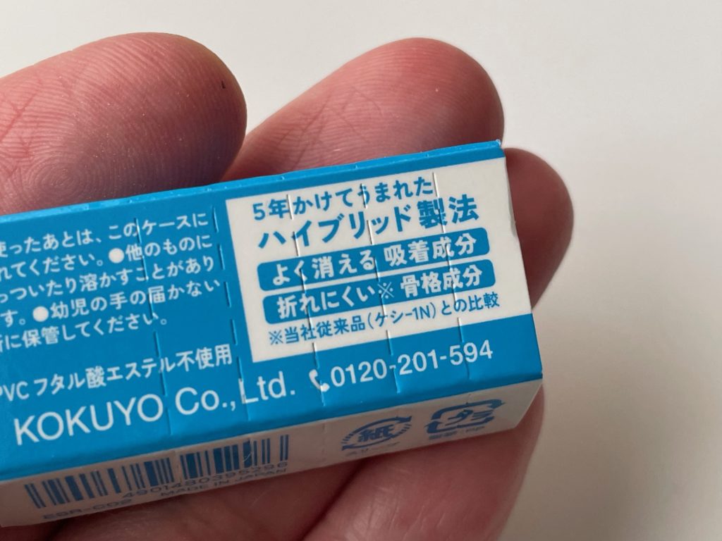 消しゴムを黒鉛(鉛筆)に吸着→擦る→消しゴムを離脱=「消える」になるのですが、消す力をアップさせるには消しゴムをやわらかくする必要があり、逆に硬くすると消えにくくなる。双方の良さを引き出したのがこちらです。各社さん色々な特長をおもちなので今度消し比べ大会してみましょう!