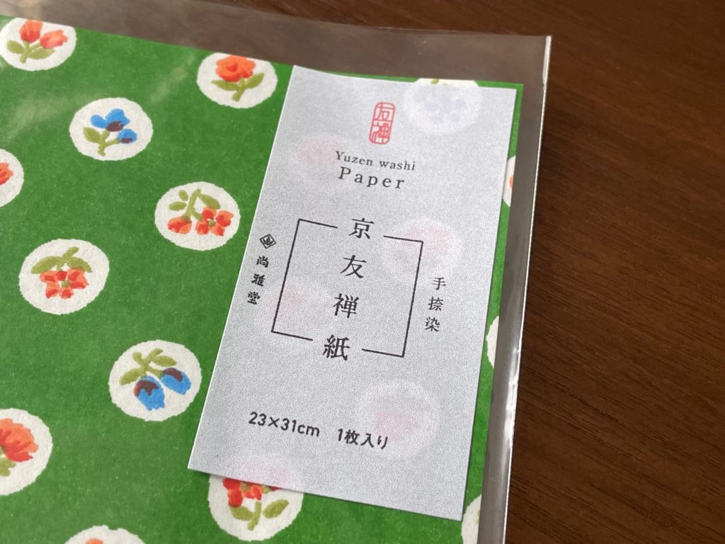 尚雅堂さんから、京友禅紙です!京友禅紙、なんと3回目の登場です。先月の「文具女子博トーキョー」で出会いました。というか1枚だけですが、購入することは決めていました。本をいただいたときに、ブックカバーとして文具博で見つけようと決めていたので(笑)