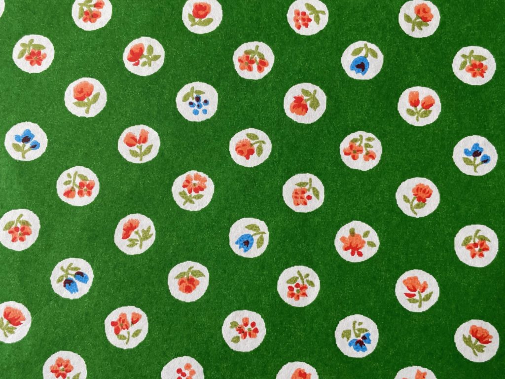 かわいらしいお花の模様たち。お花たち、たぶん9種類のイラストです。緑とお花、相性いいですよね。1枚税込み275円で購入しました。バラ売りしているのはこのようなイベントだけでしょうか。