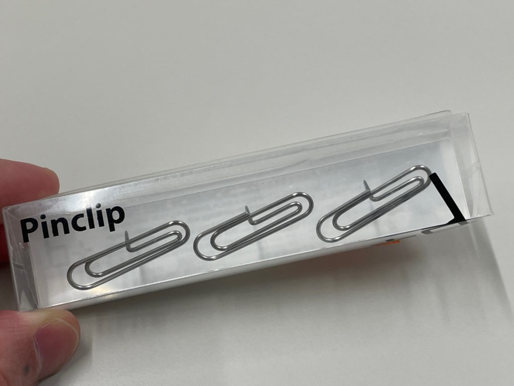 こんなかんじです! さて?これはクリップなのか?プッシュピンなのか?うん、どっちもでしょう! コチラのアイテム、「Pinclip」というネーミングですが、そういうことです。ピン(プッシュピン)であり、クリップ(Clip)なんですね!しかしよく考えましたね~(^▽^)/