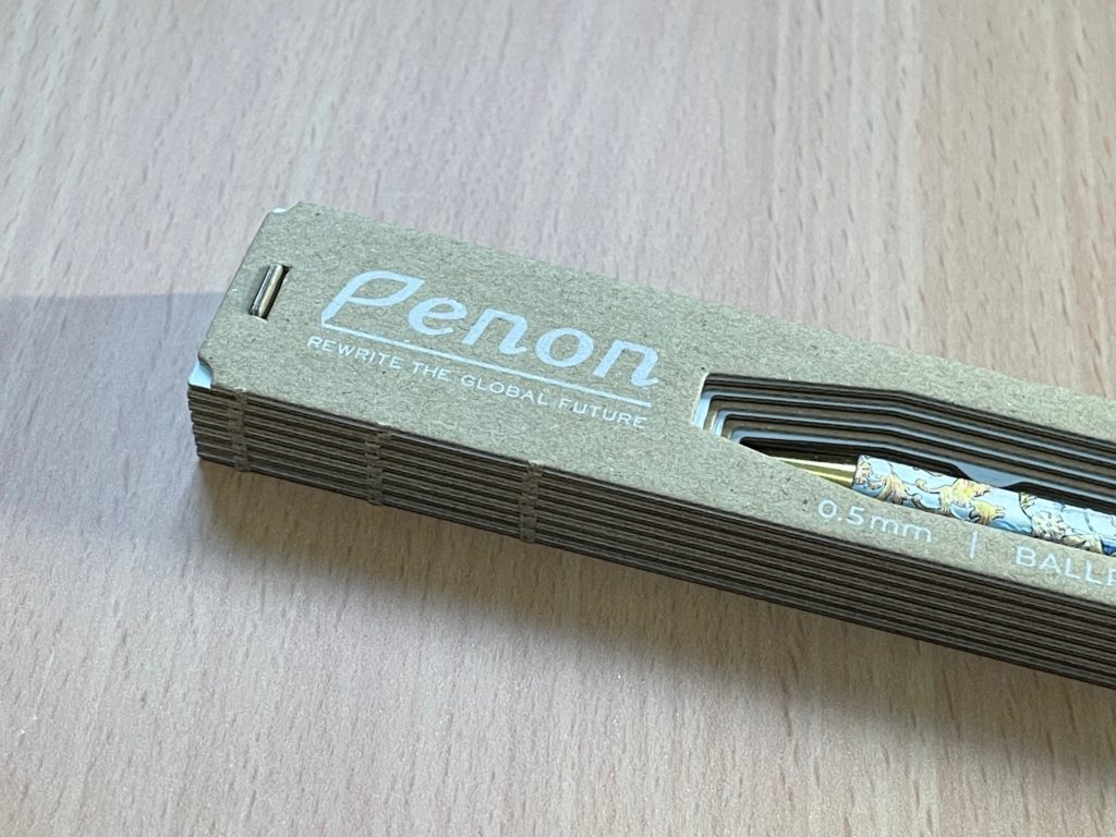 ペン尻からペン先まで、すべて美しいですね。Penonさん独特の印刷技術で生み出されました。触り心地、今までにないボールペンなので新鮮です! ちなみに、いつもは開封時の画像を載せるのですが、今回は「開封後」から(笑)。まずは先にボールペンをみてほしくて、、