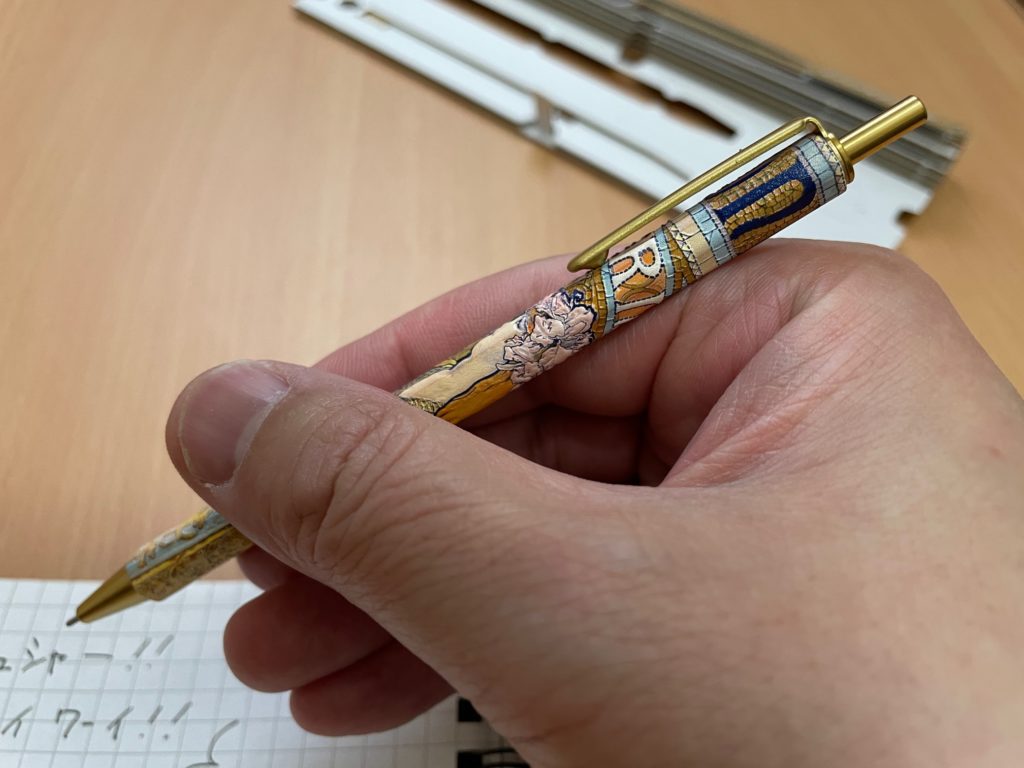 最後にサイズ感と触り心地。独自の印刷技術で、良い感じの凸凹感というのかな、立体感があります。絵画でいうと油絵感、とでもいうのでしょうか。楽しいです。 お値段ですが、税込み1,500円。ここまで気配りができており、このお値段GOODです! 例えば、ちょっとしたプレゼントとして活用するのもアリです、すでにお気に入りのボールペンをお持ちの方も、きっと喜ばれると思います!