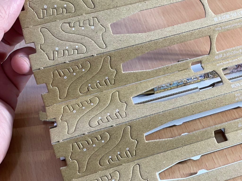 そのケースにも注目、画像の網目になっているところを切り離して組み立てていくとペン立てにもなります!勿体ないのでまだできないので、完成図は想像にお任せします(笑)。