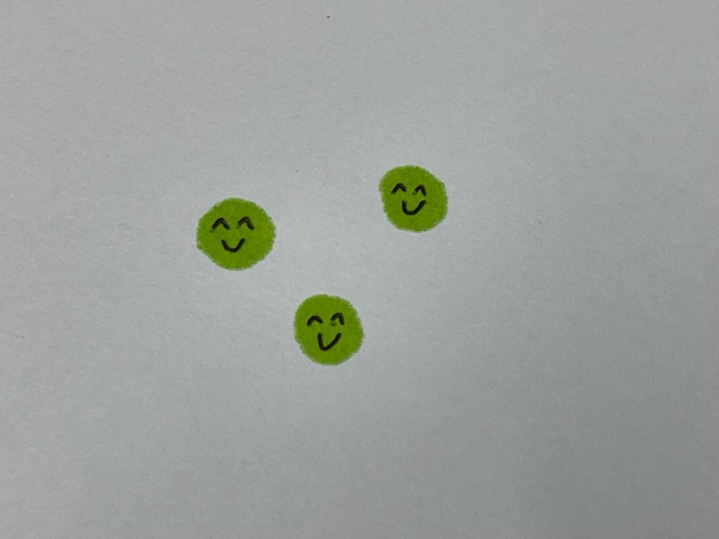 少しだけ応用、「まる」を複数使うことで花びらが付いたお花ができました!!かわいい!!