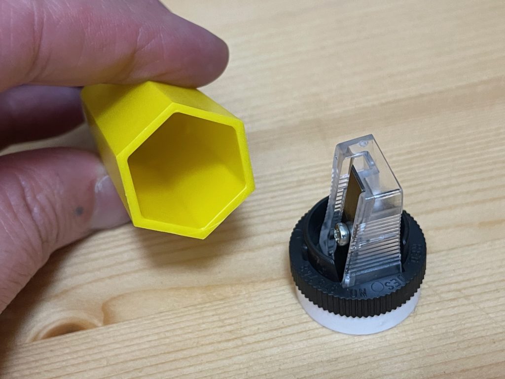 こちらが鉛筆を削るところですね。削りカスはこの奥、鉛筆本体部分にたまっていくのですね。