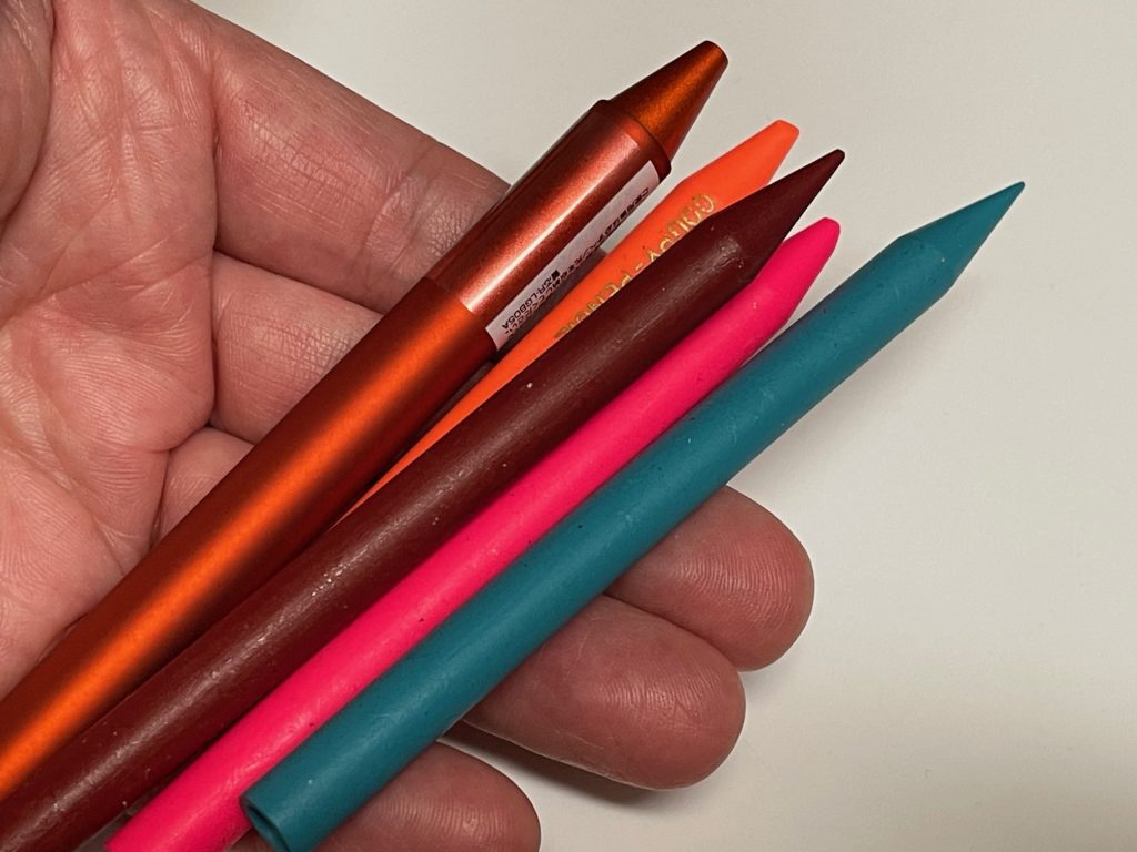 うわ~、とっても良き良きですよ~! HPにもキャッチコピーがありますが、「大人のクーピー」です。サクラクレパスさんといえば「クーピー」ですよね。クーピーをイメージされて製作されました!そのため、色も全10色とバリエーション豊富です!私は「オレンジ」を選びました!