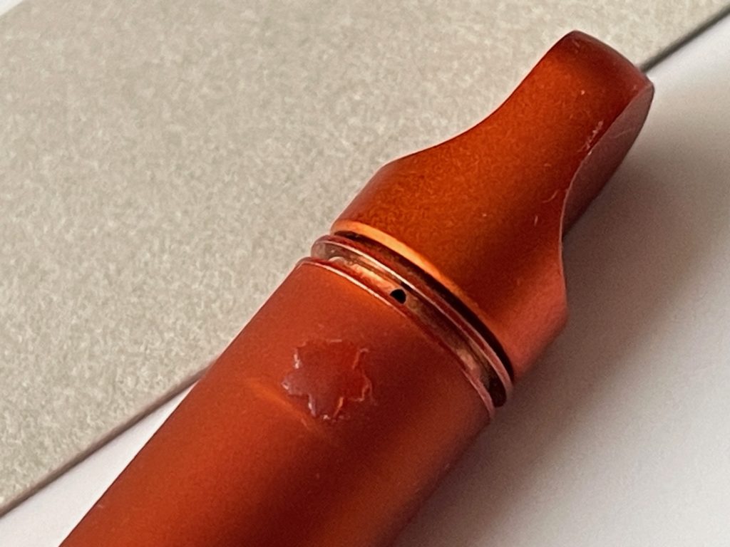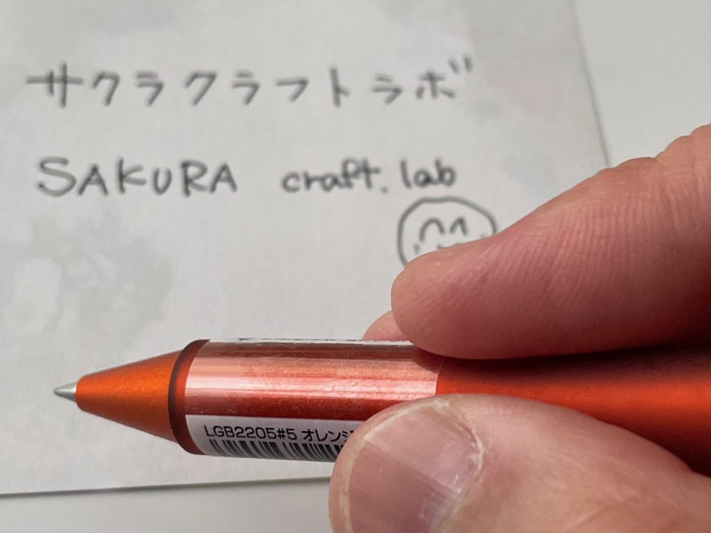 こちらも001同様ゲルインキを使用。ゲルインキって普段使いしやすいですよね。サラーっと書けちゃいますし。あと、002の触り心地ですが、マット感があり持ちやすいですよ(⌒∇⌒)。真鍮とアクリルの二重構造になっているためこちらも長く使うともっと味わいがでるのでしょう!