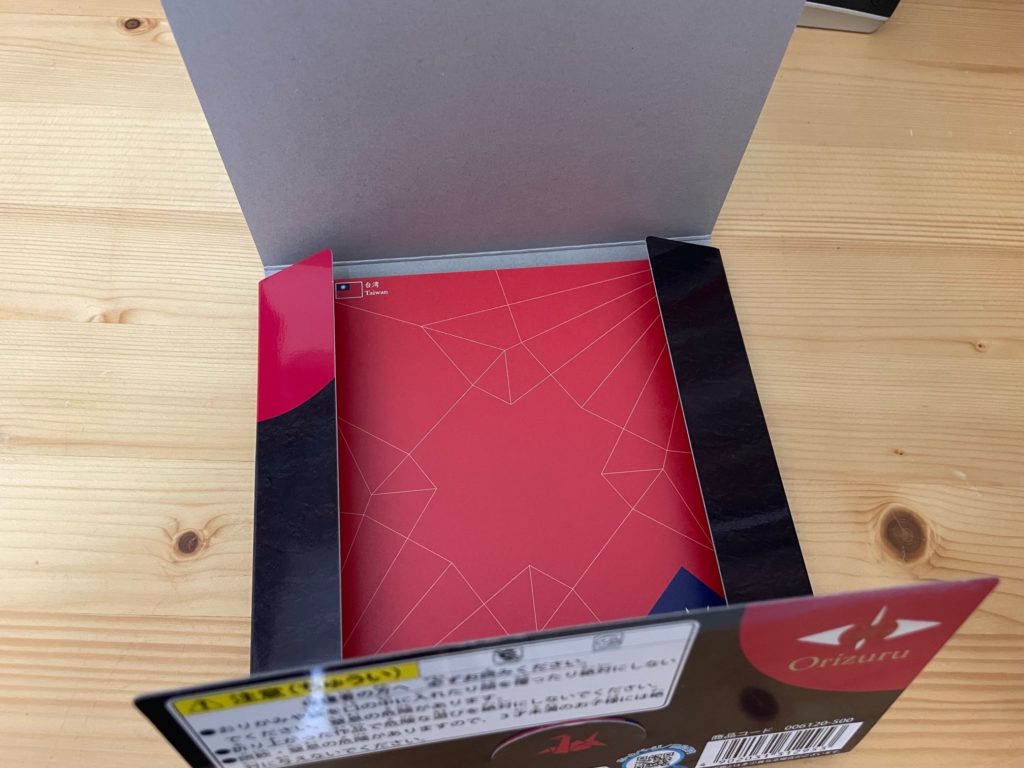 ちなみに、商品名が「おりづる」なんです。すべての折り紙に「線」が入っているのがお判りでしょうか。この線に沿って折ることで鶴が完成されていくのですね。おりづるに特化した折り紙なのです!