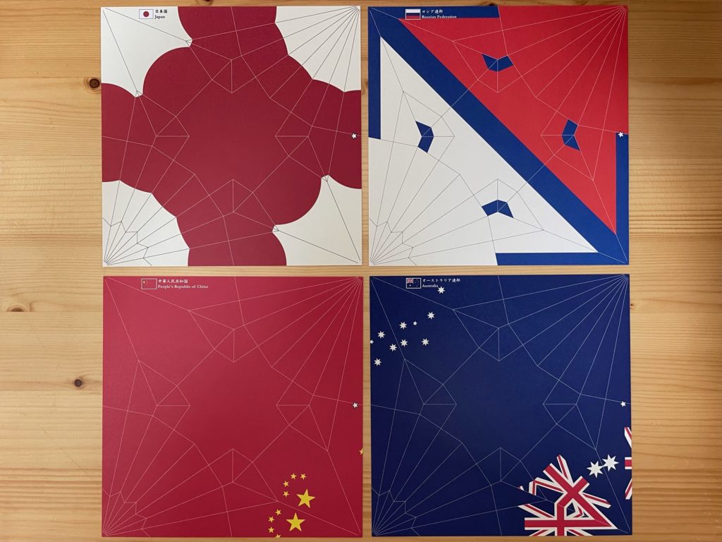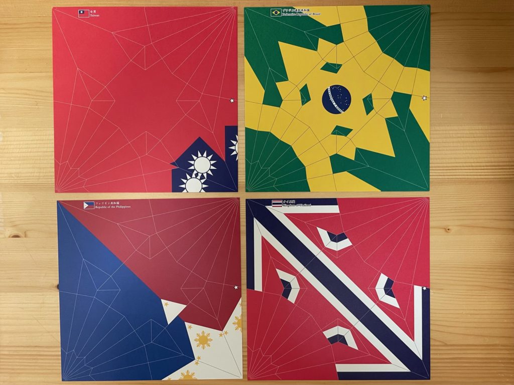 パッと見て、どの国の国旗になっていくのかわかります? ごめんなさい、私はこの中だとブラジルくらいしか思いつかないな。