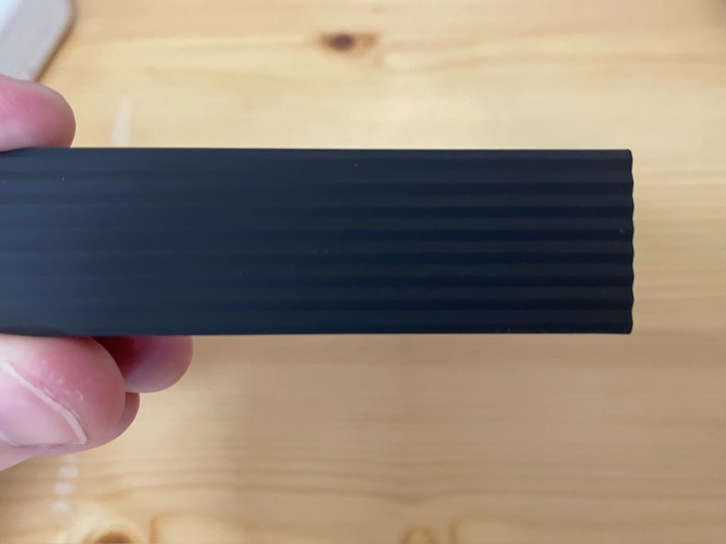 スリーブから本体を出現させました。ギザギザ、見えますでしょうか。MONO smartを紹介したときも紹介しましたが、スリーブの角部分を丸くして、出し入れしやすい設計になっています!