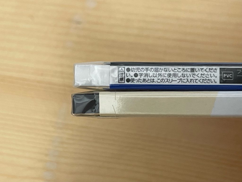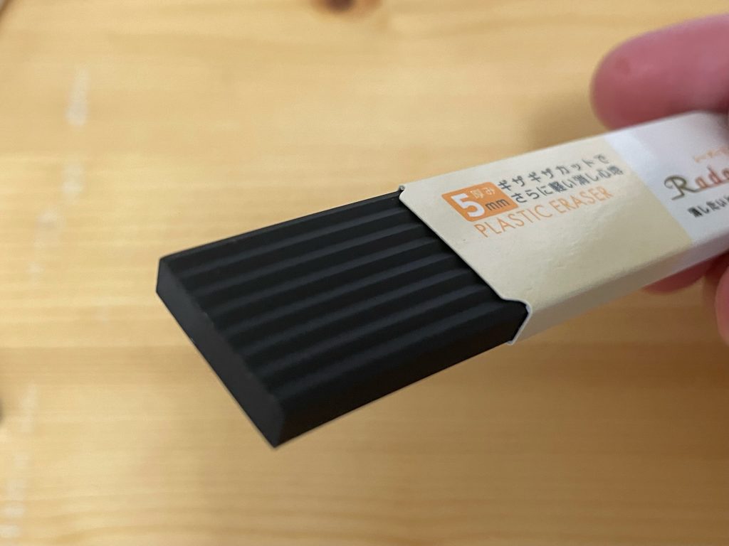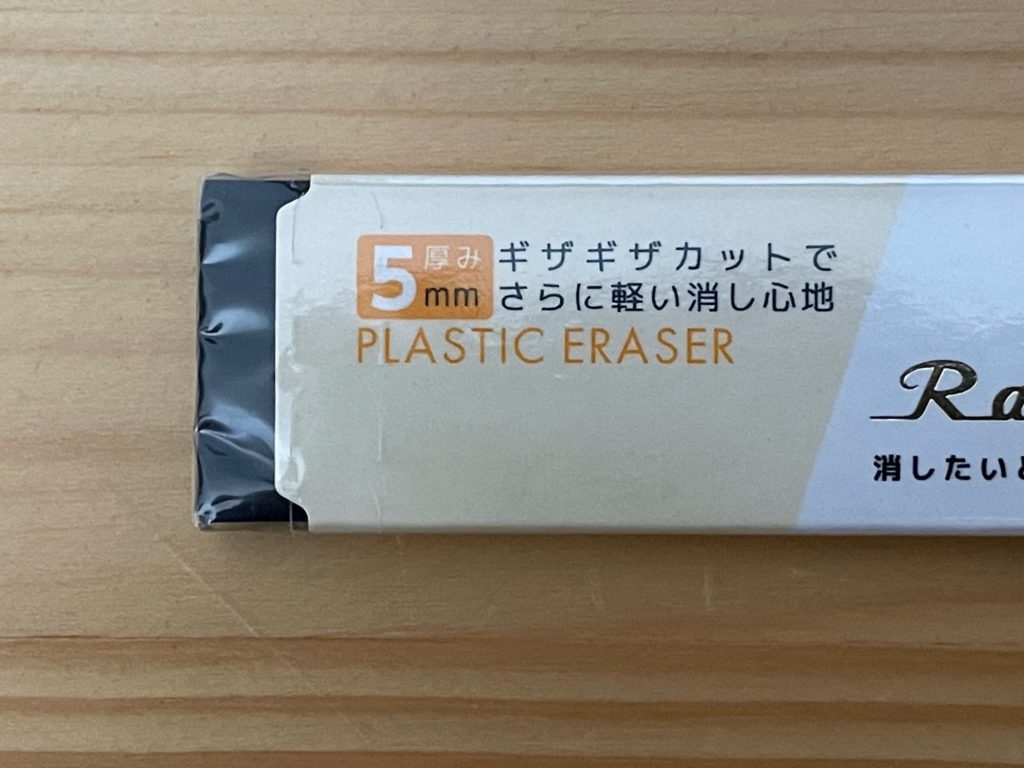 厚み5mmです。MONO smartは5.5mmなので0.5mm薄いのですね! ギザギザカットでさらに軽い消し心地、とのこと。