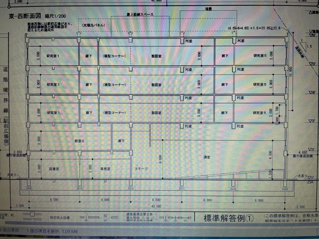 最後に計画の要点ですが、これらもいろいろ難しいのですが、以前製図で講師をされている方とお話したのですが、「建築計画」に関する記述が意外と難しいようです。構造等は理由などを書くのは難しくないのですが、今年で言えば「配慮したこと 学生間の交流や学生と教員の交流の場」抽象的でこれこそザ・プレゼンですよね。自分のセンテンスが求められる。。講師曰く、計画系の要点が一番難しいらしいです。。。