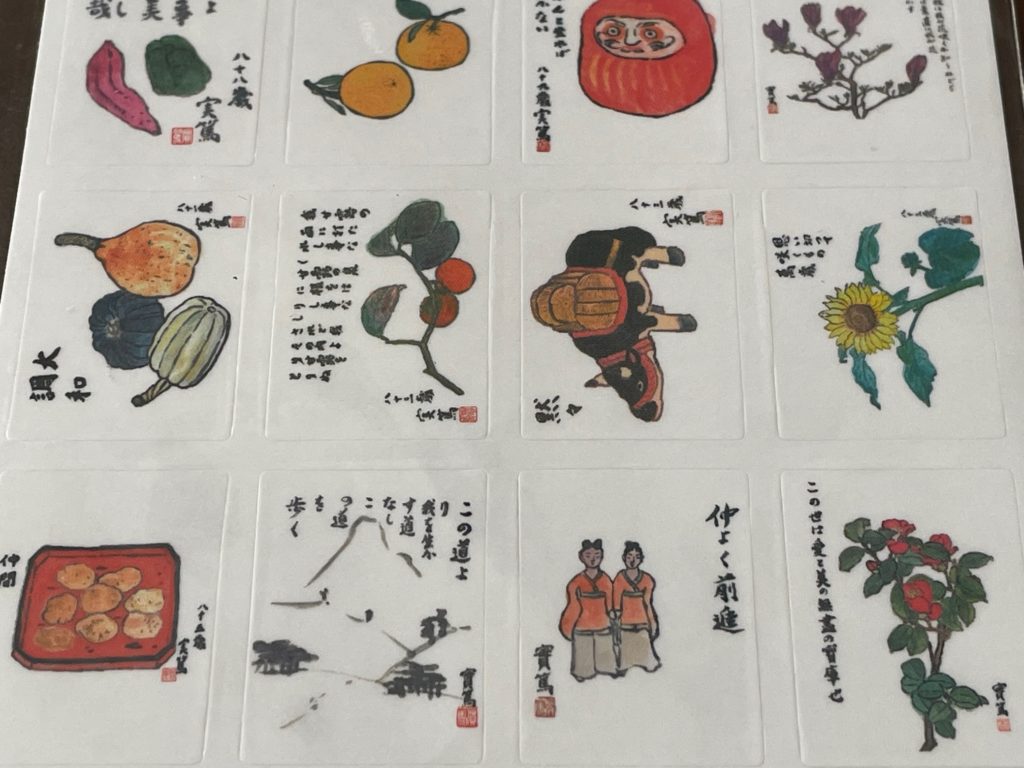 ということで我が家にようこそ!です。実篤シール(私が勝手にそう呼んでいます)です。武者小路実篤さんは勿論小説家として有名なのですが、画家でもあるのですね。多彩だなあ。そんな実篤先生の絵とことばを集めたシールです。これは楽しきかついろいろ想い馳せることができるアイテムですよ!