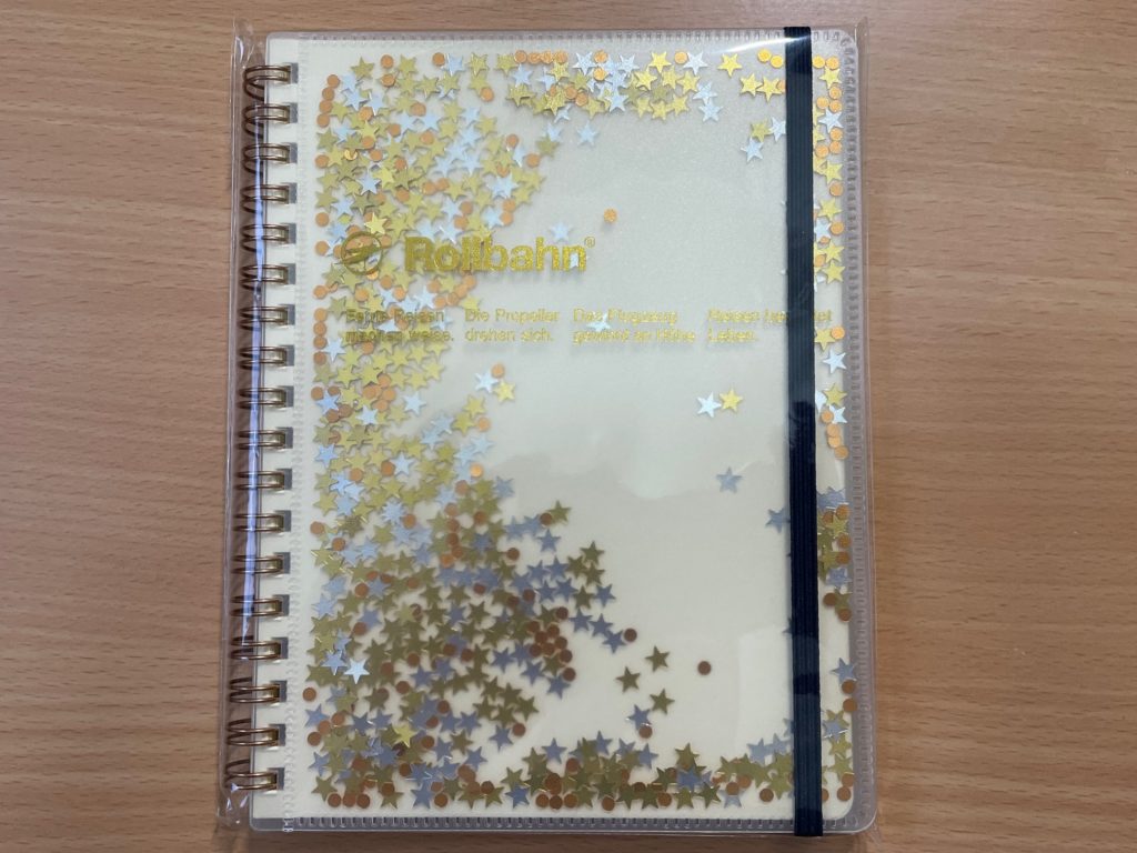 じゃん!コチラです!! 見てください!! スパンコールたくさん!! 動かすと波の音のように聞こえます、なかなか心地良きです。こちら、ロルバーン史上トップクラスの楽しさ&人気じゃないかしら??勿体なさ過ぎて開封できない(笑) 正式名称は「ロルバーン ポケット付メモ グリッター L」ですから、いつもの定番サイズですね!