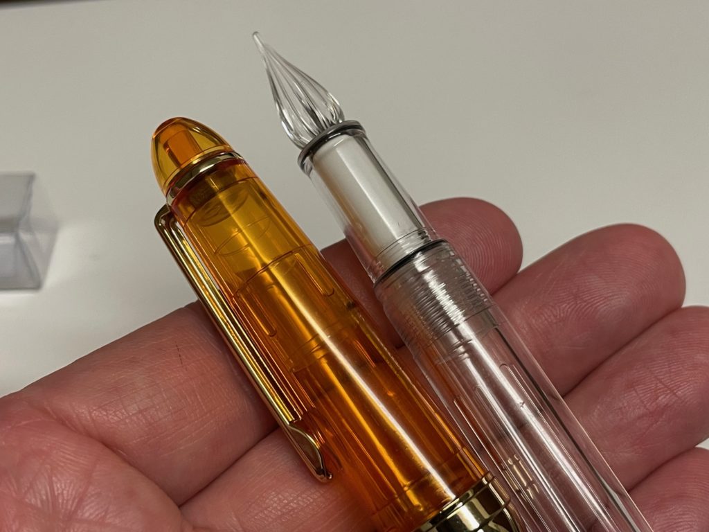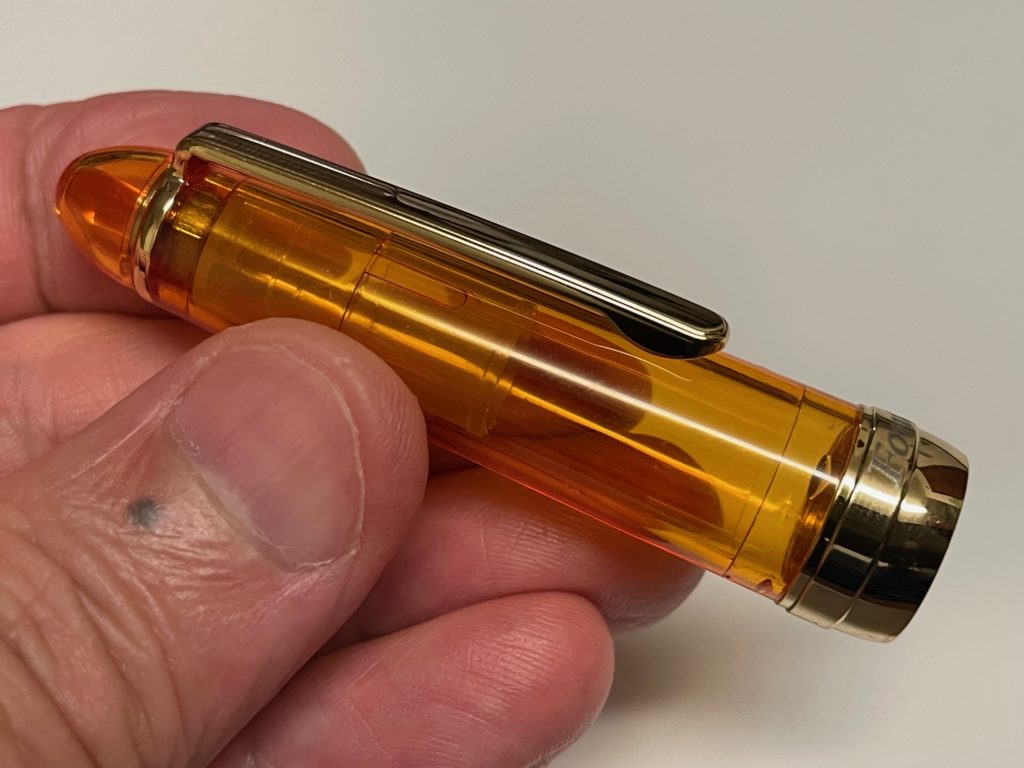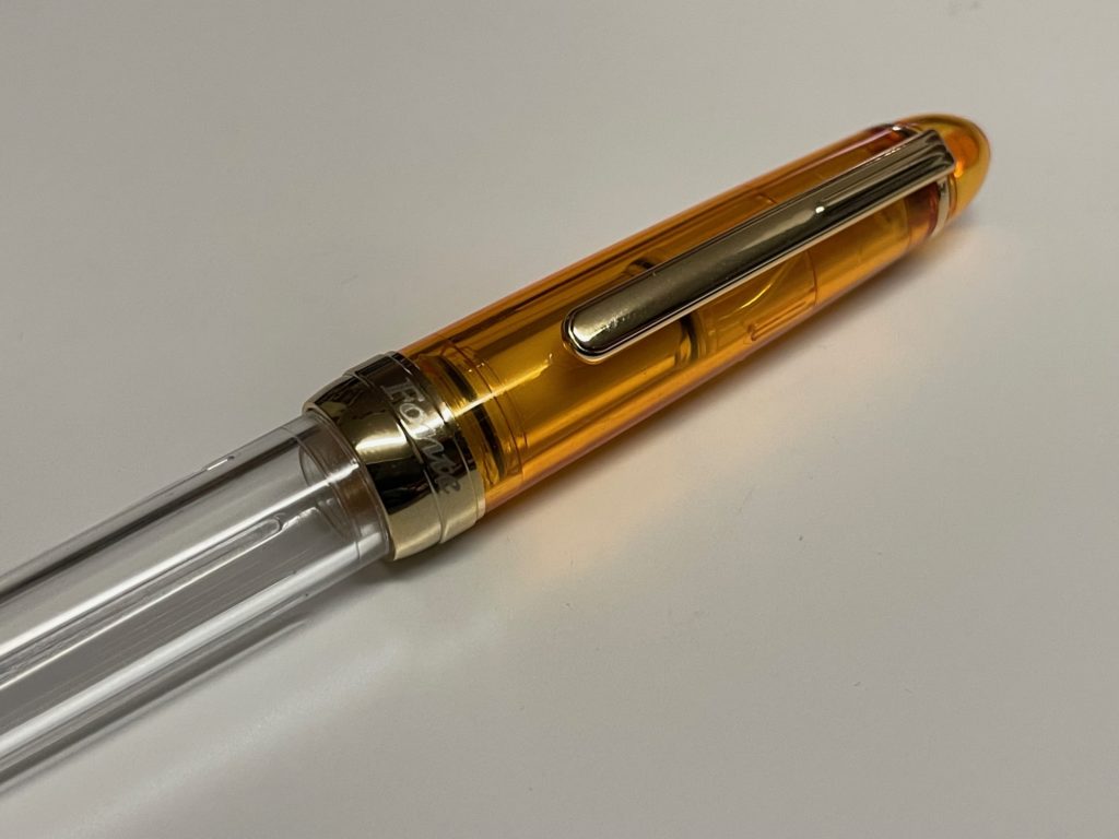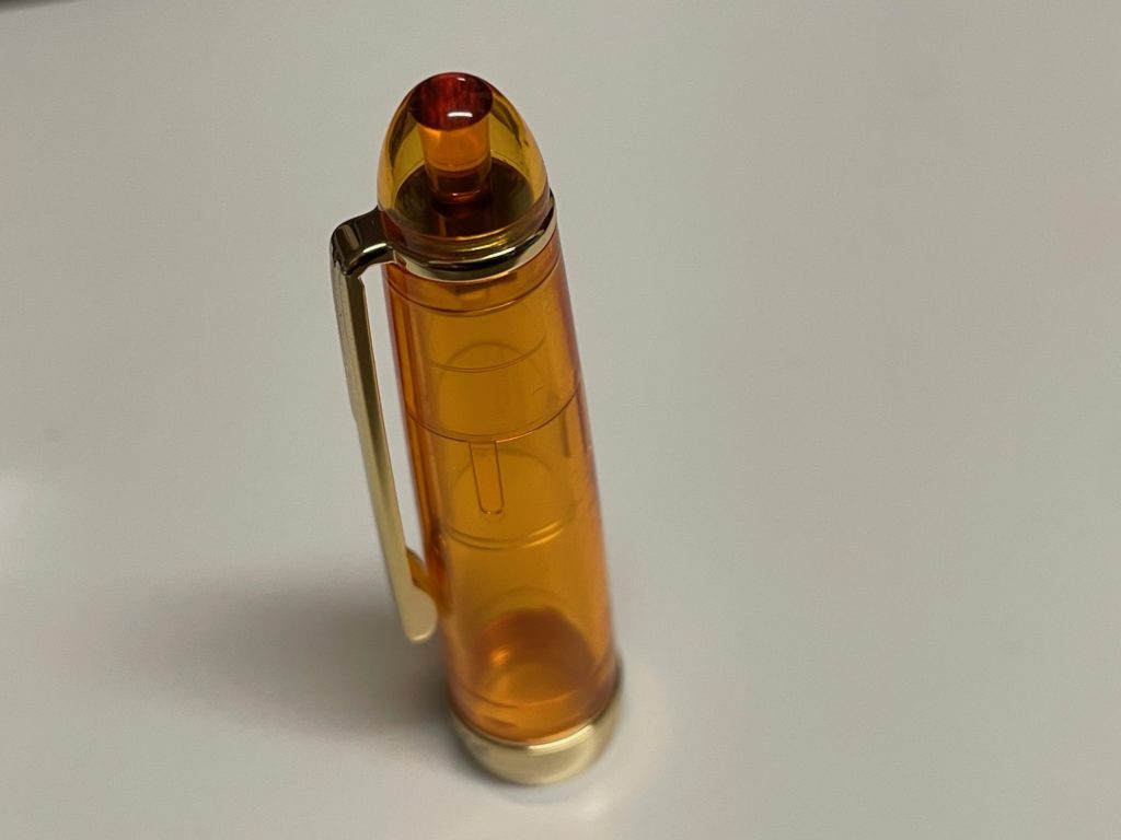 キャップです! こちらは税込み330円です。私が選んだのは「クリアオレンジ」です。ペン軸は持った時、かるいな~と思いましたが、キャップは少々重みがあります。きれいなお色だわ。