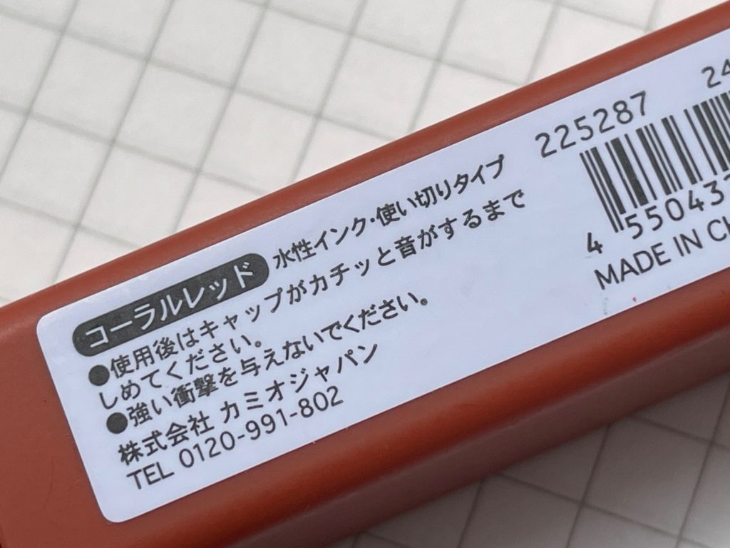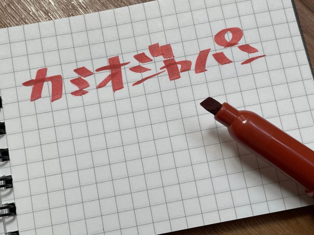 カミオジャパンさんのアイテムなので、とりあえず「カミオジャパン」と書きました。いわゆる一般的な蛍光マーカーの書き味です。