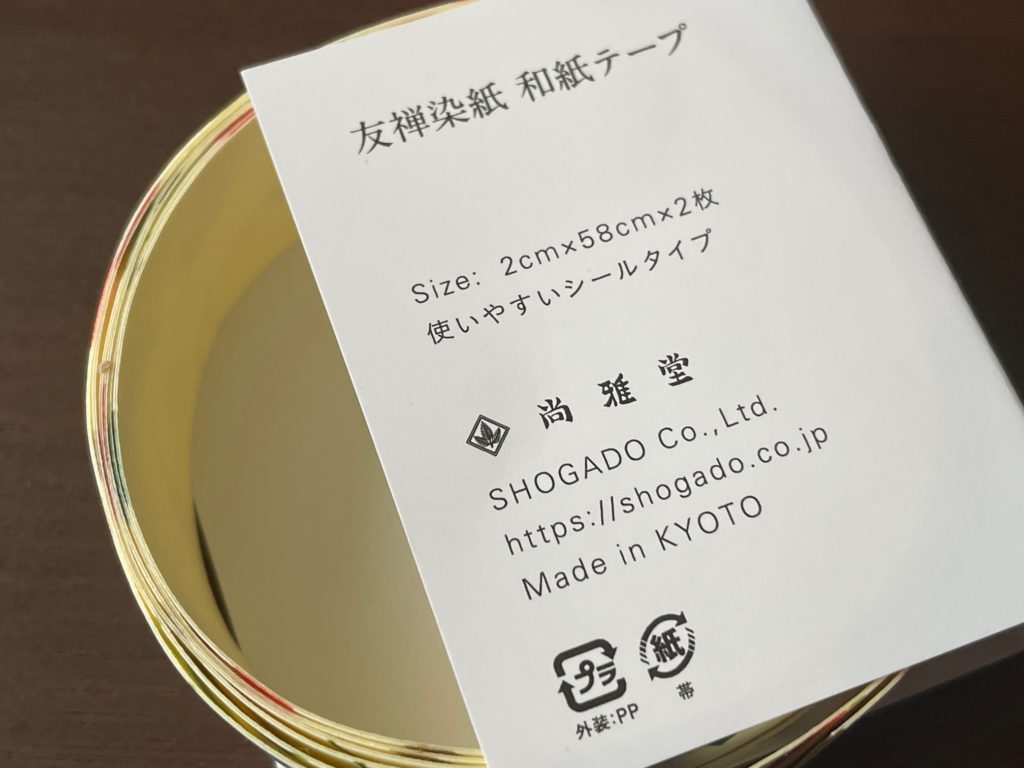 バーコードに隠れていたので、透明の樹脂ケースから開封しました! そうしたら、確認できました! 尚雅堂(しょうがどう)さんです! 尚雅堂さんとの初めての出会いは文具女子博でした。とっても素敵な和紙を紹介してくださっていました! このように和紙テープも展開されているのですね!すばらしいです!