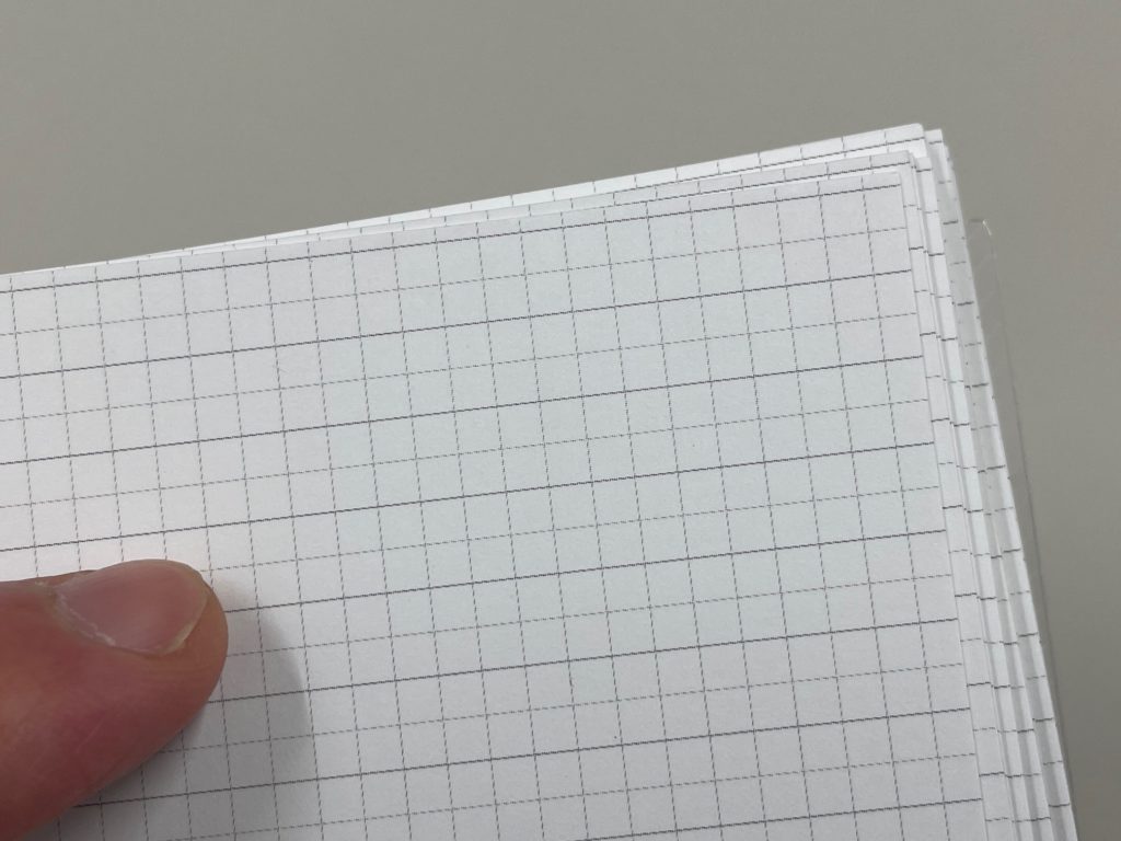 この単語カード、よくできています。3mmごとに点線、6mmごとに線があるため3mmを駆使して図や表が細かくきれいに描け、6mmの線では文字をバランスよく書けるような設定です。細かいところまで気配りができています!