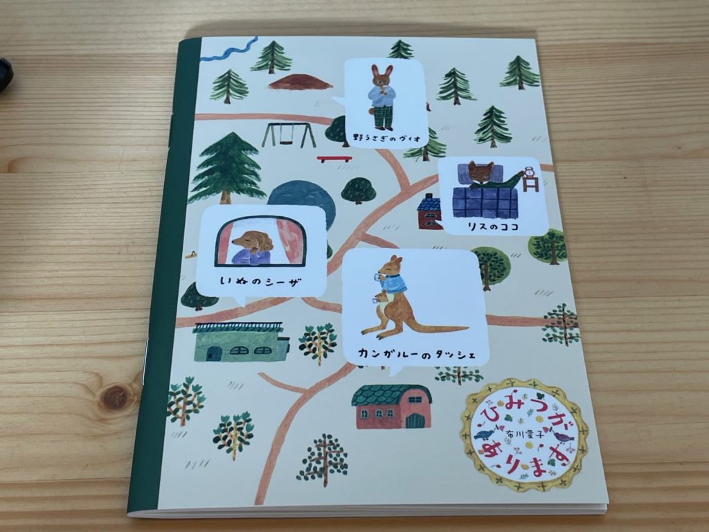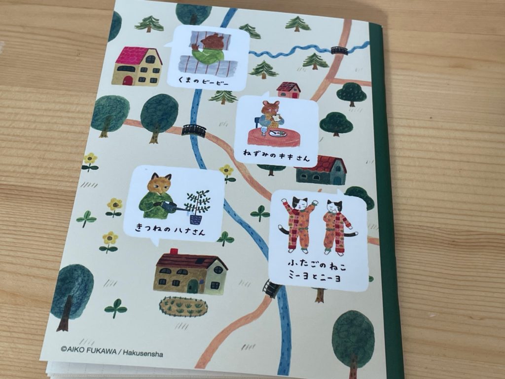 こちらはノート裏表紙です! 絵本に登場してくるキャラクターたちが勢ぞろいしています!かわいいな。今度絵本しっかり読みます!