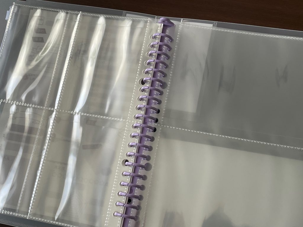 もうひとつ画像をどうぞ。左ページがカードなどをしまえます。トレーディングカードなどですね。右ページが割と大きいというかL判写真がすっぽり入る大きさになっています。まだ使っていないのにすでにワクワクしています(笑)!