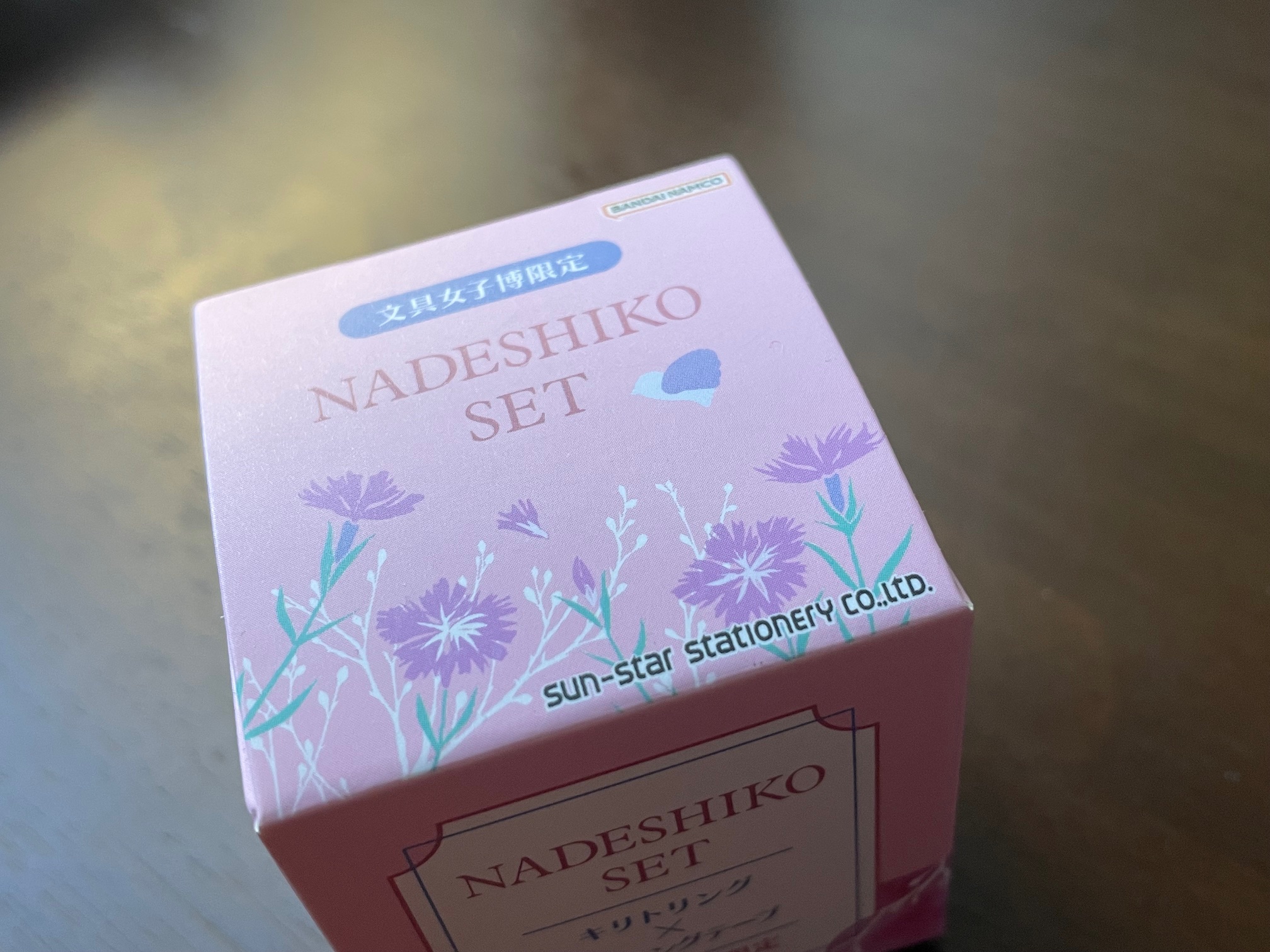 こちらが正面から。「NADESHIKO SET」「キリトリング×マスキングテープ」、そして「文具女子博」と表記されています。これはワクワクですよ!! お値段は税込み660円です。