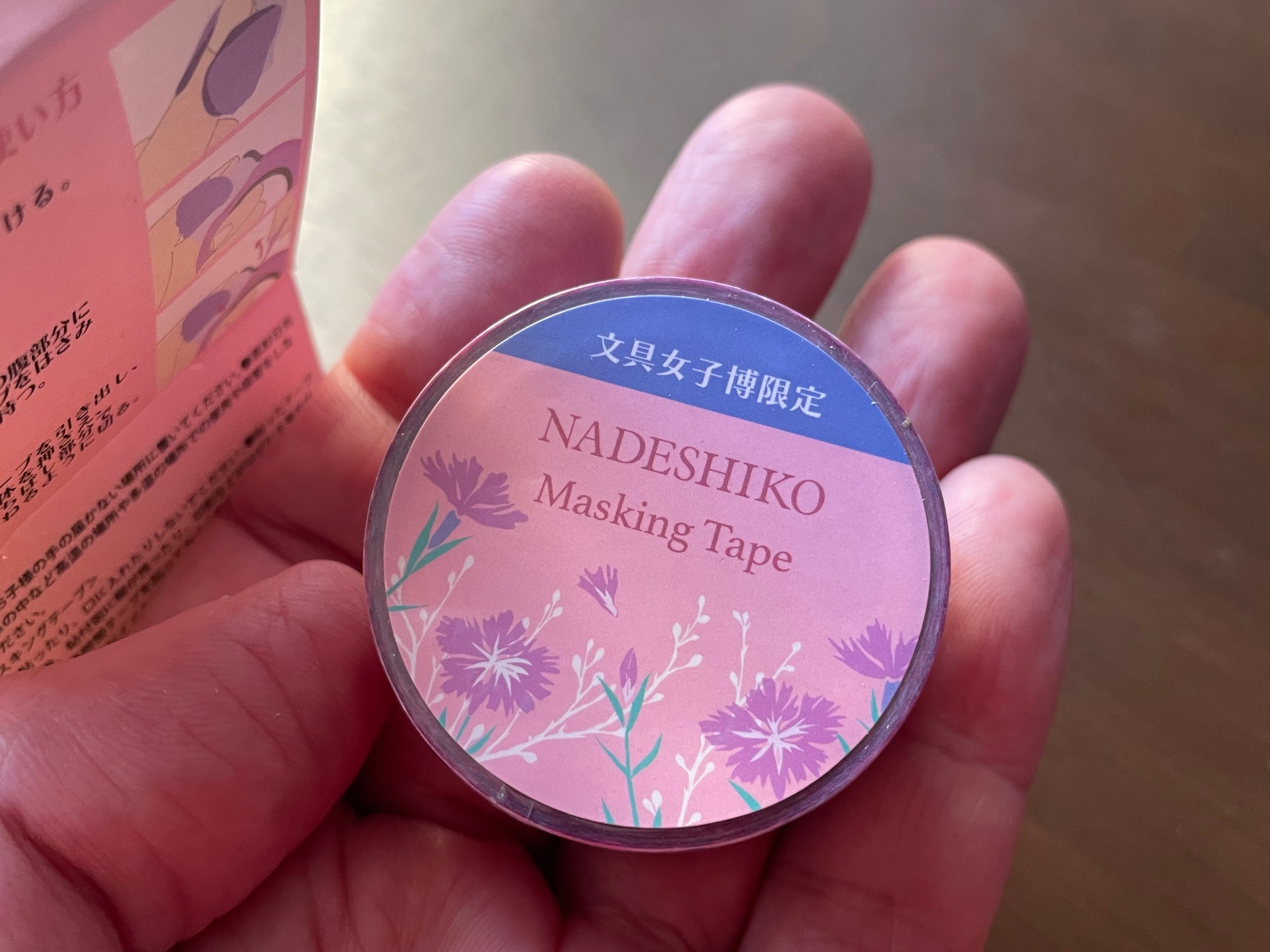 セットのもうひとつ、マスキングテープです。こちらのデザインが文具女子博限定デザインなのでしょう。なんといっても「NADESHIKO SET」ですから、テープのデザインがなでしこなのですね!
