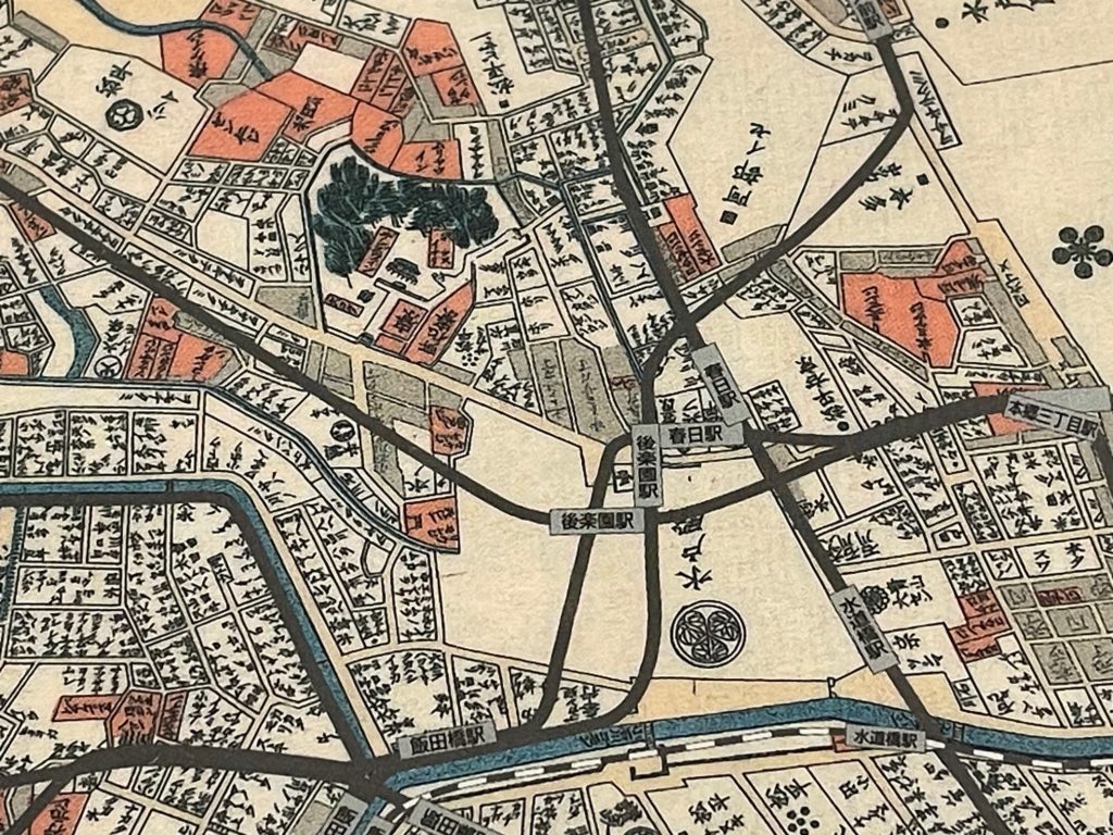 丸の内線、南北線が交わる後楽園駅(春日駅)。水戸藩とありますが、そうですね、ここは今では有名な庭園、小石川後楽園ですね。紅葉の季節は本当に最高でいいところです。