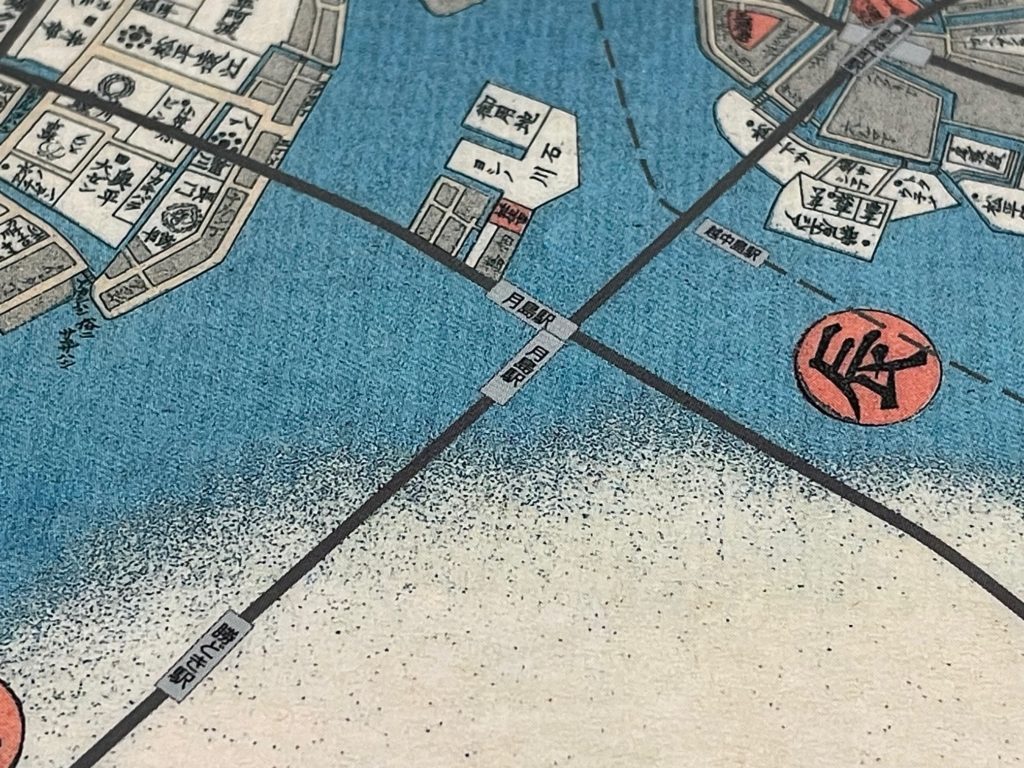 もんじゃ焼きで有名な月島駅周辺。まだ月島ができていません。埋め立て中なのでしょうか。月島がこうなのですから、、