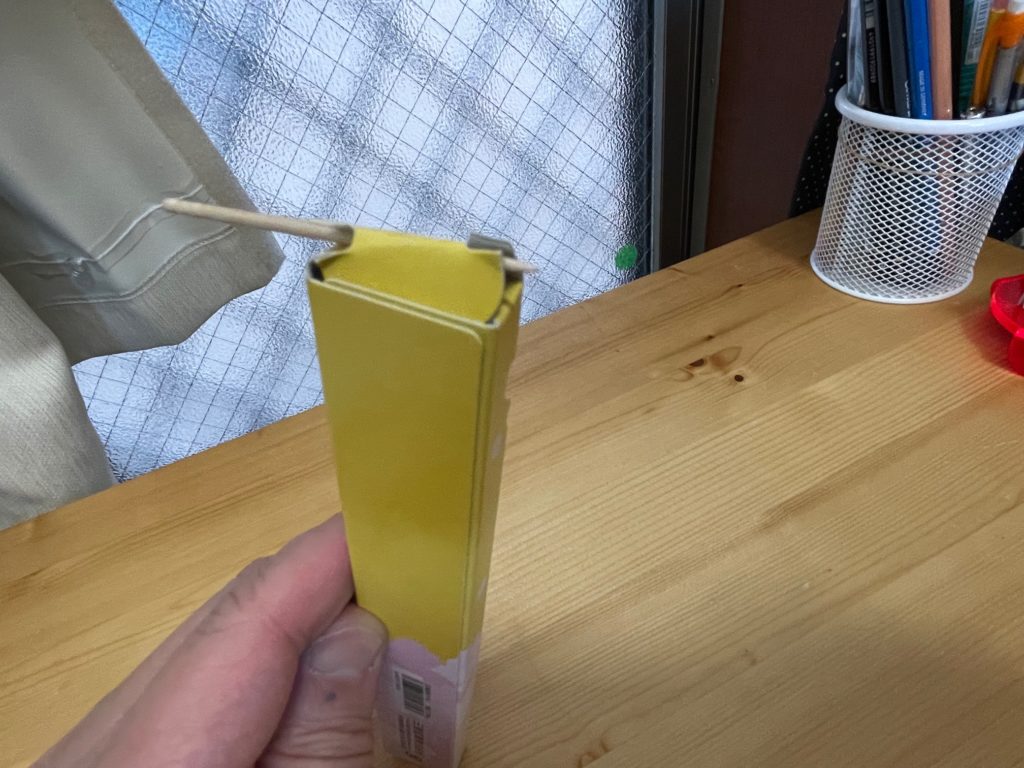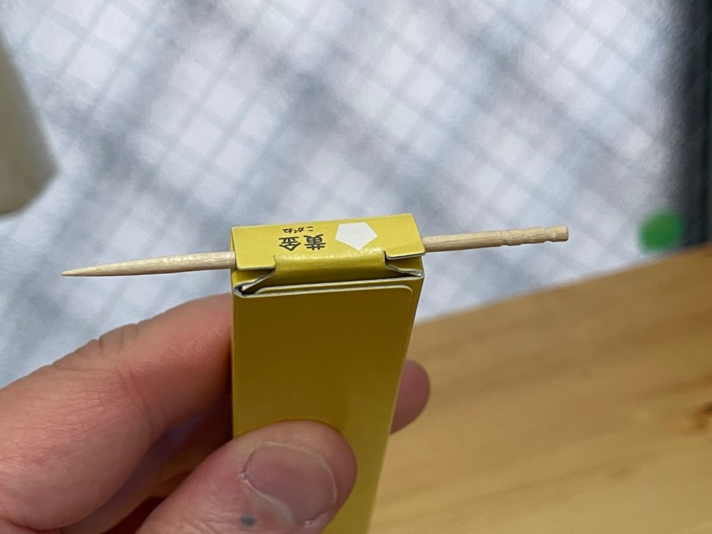 すいません、、なんとも滑稽な画像ですよね。開封したいのですが、せっかくのパッケージが破れてしまいそうでしたので、爪楊枝を使い開封を試みました(笑)この私の行為、共感してくれる方いたら嬉しいな、、きっと仲良しになれる(笑)