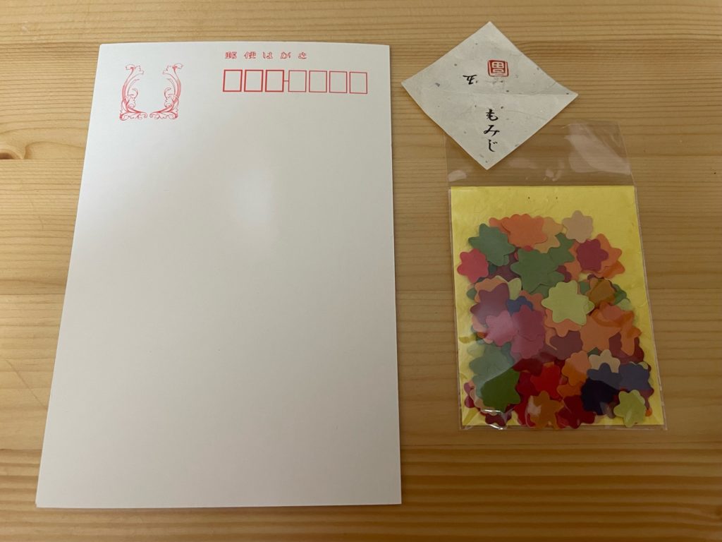 画像右側は、このハガキの通信面(裏面)に貼る予定の、和紙たちです!(前回の投稿で紹介させ)ていただきました!