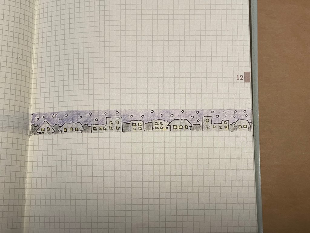 まるっと1ページお見せできるものが少ないのですが、勝手に「マスキングテープふう景色」と呼んでいます。イラストの下が、「日記」ゾーン。毎日ここに出来事、思い、生意気なこと、愚痴などを思いのまま書きます。我ながらよく1年間続いたなと思います。