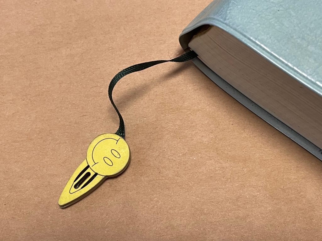 こちらはスピンチャームです。実はスピンを2つ使っていたのですが、一つは作業中に引っ掛けてしまいスピン(書籍などについているしおり代わりの紐)がちぎれてしまいました。。画像はヘアピンですがもうひとつは途中リタイヤでした。これもまた経験でした。
