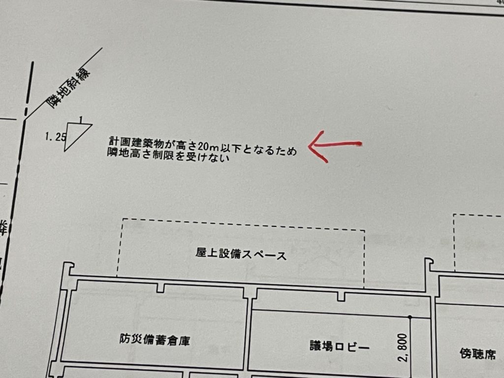 例えばです。試験元の解答例にもあります「隣地斜線」について。「計画建築物が高さ20m以下となるため隣地高さ制限を受けない」と記載しています。しかし、、今回は3階建てですから20mを超えるわけがない。つまり、わざわざそんな文言を示すまでもない!って考えますよね。これが5階建てとか6階建てならわかるのですが、、ただし試験元は要求図書の東西断面図について、③高さ制限への適合が確認できる情報(道路、隣地斜線、最小後退距離、計算式等)を記入する。とあります。わざわざ書く必要もない高さだけど、書かなくてはいけないのでしょうか。これってどうなのでしょうか。もしかしたら、これを記入せず不合格だった方、ここがどの程度の減点になるのか、というかそもそもこれ減点??という認識かもしれません。。
