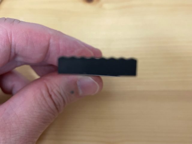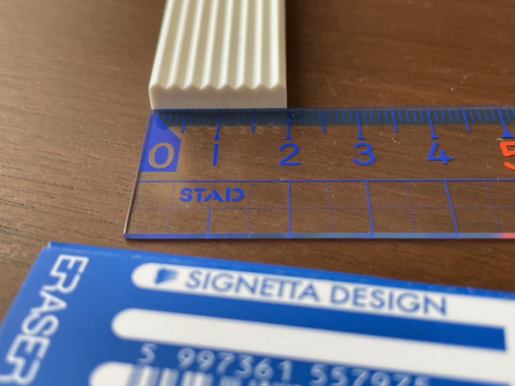 せっかくスリーブから外したので、サイズを測りました。横75mm、縦20mmですね。画像にはありませんが、高さは5mmです。それこそレーダーラインと同じようなサイズです。高さ5mmなので筆箱にも収納しやすいです。