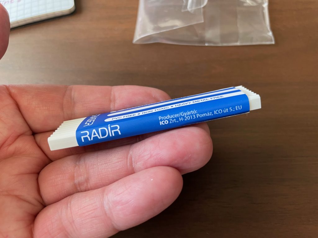 スリーブも触り心地良好、ただ日本のメーカーさんのスリーブはわりと光沢があり耐久性に優れていますが、こちらは少し弱めかもしれません。ただハサミなどを入れやすいので、消しゴムが小さくなってきたとき切りやすそうです。また、日本と違う触り心地が良いです。ヨーロッパを感じながら使いましょう(^▽^)/ ところで画像にある「RADíR」どんな意味なのでしょう、、
