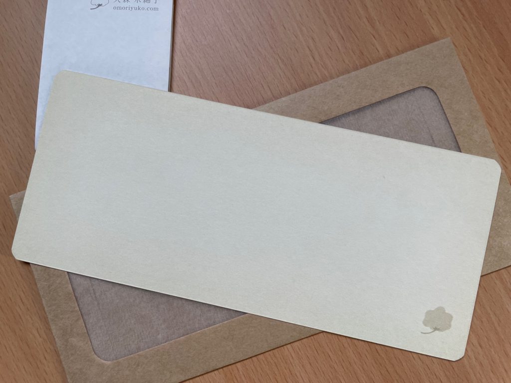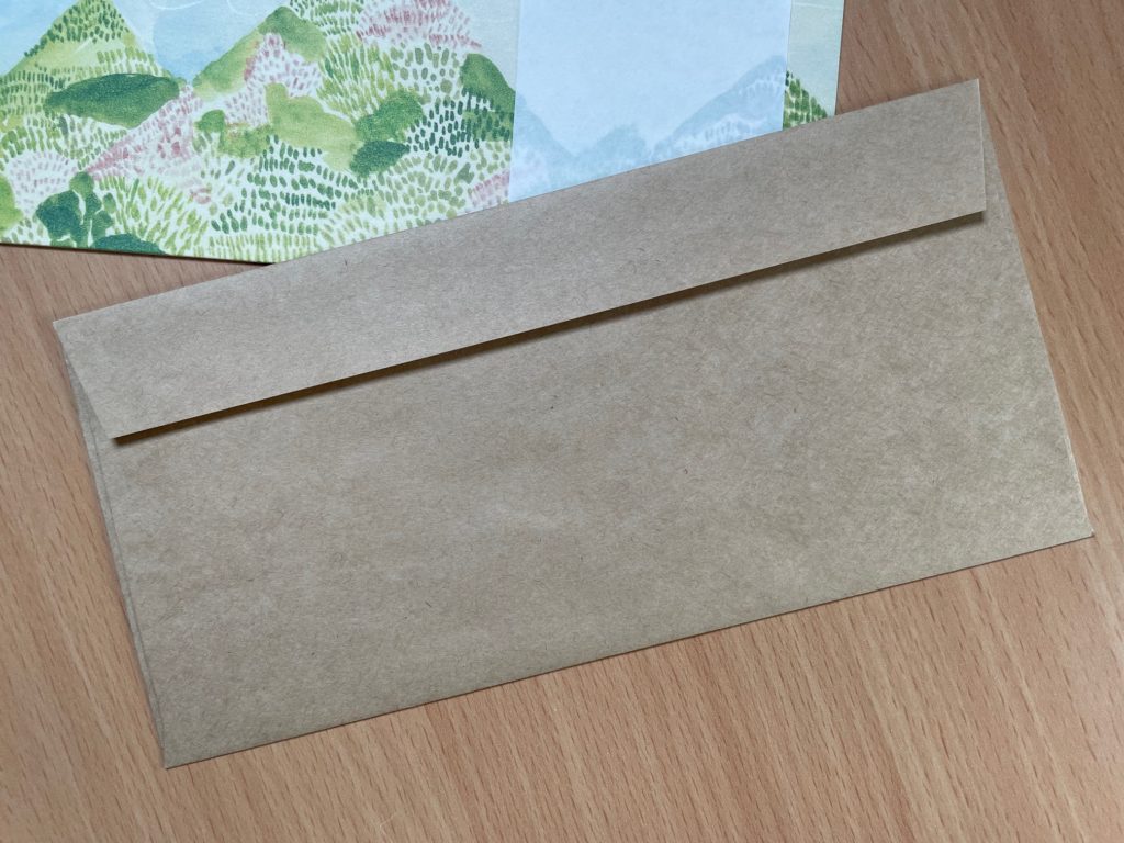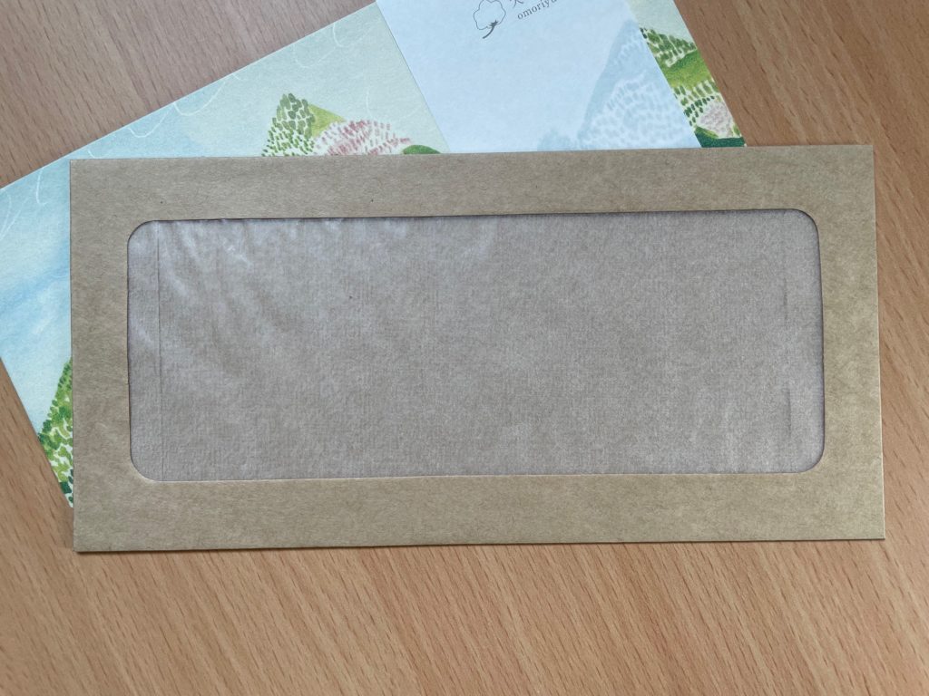 どこか懐かしさを感じる封筒です。半透明側にイラスト面を添えると良いのですね。この半透明の紙、素材なんでしょう。触った時のパリパリっていう音が心地よいです。