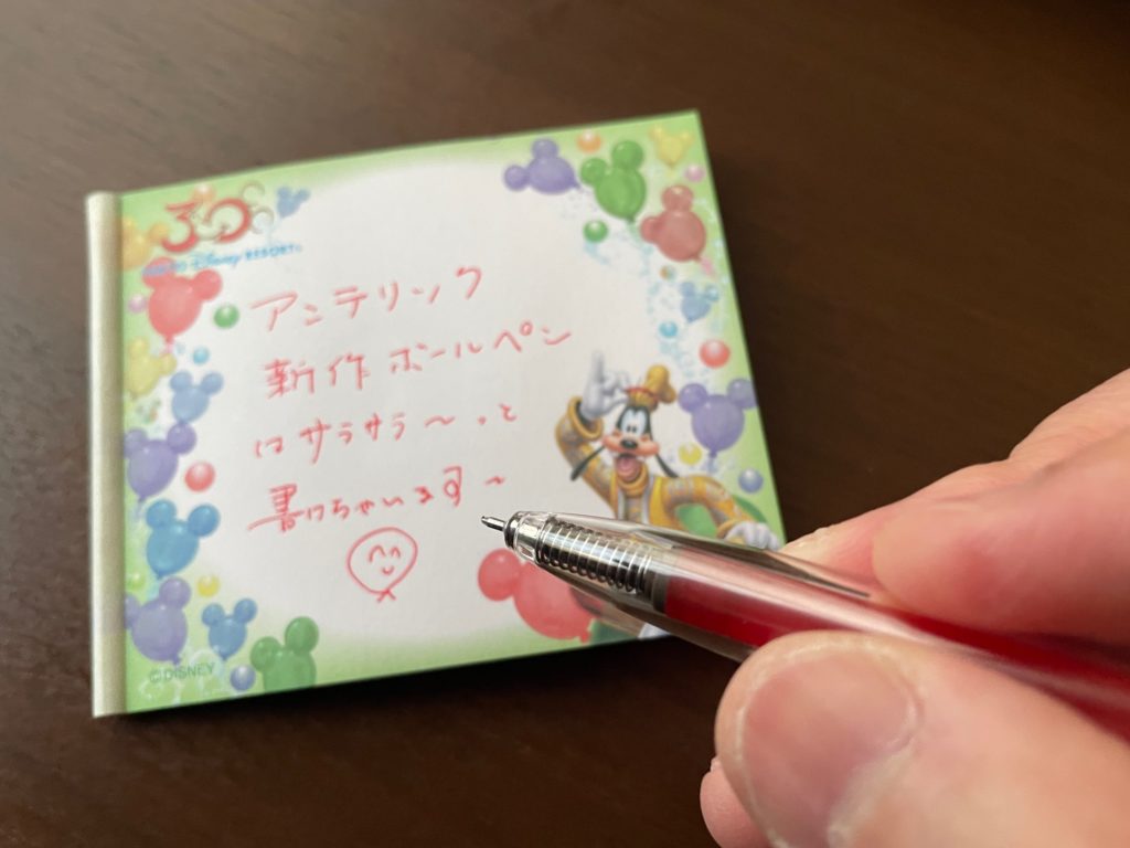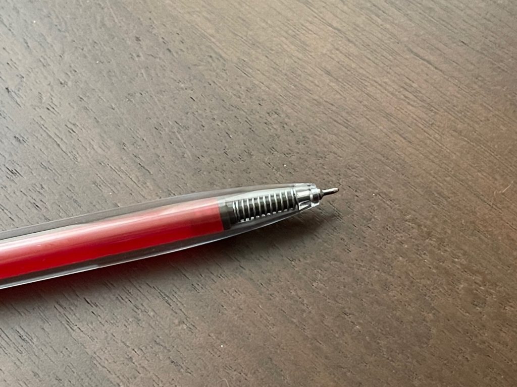 ボール径は0.4mmを採用しています。画像のペン先ですが、印象としてはかなり細いです。ですから書いた瞬間、良い意味で「思ったよりもしっかり書ける」印象を持ちました。