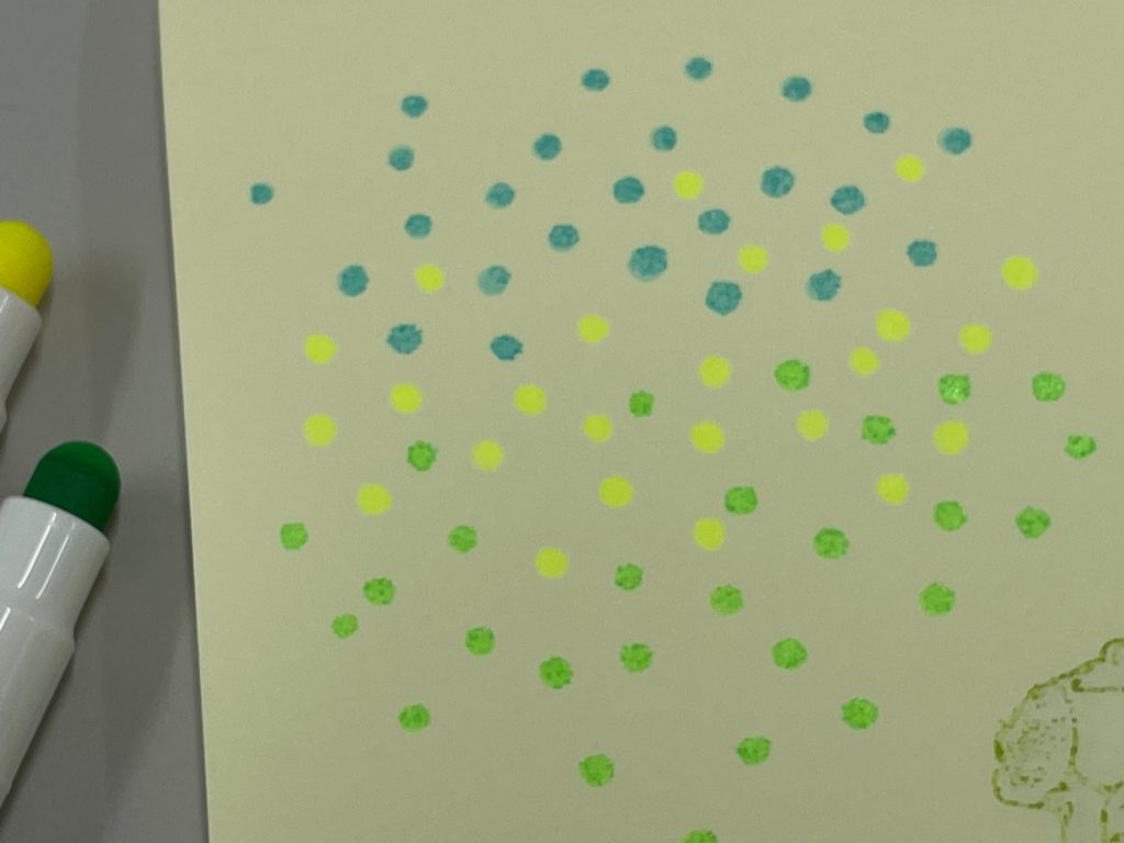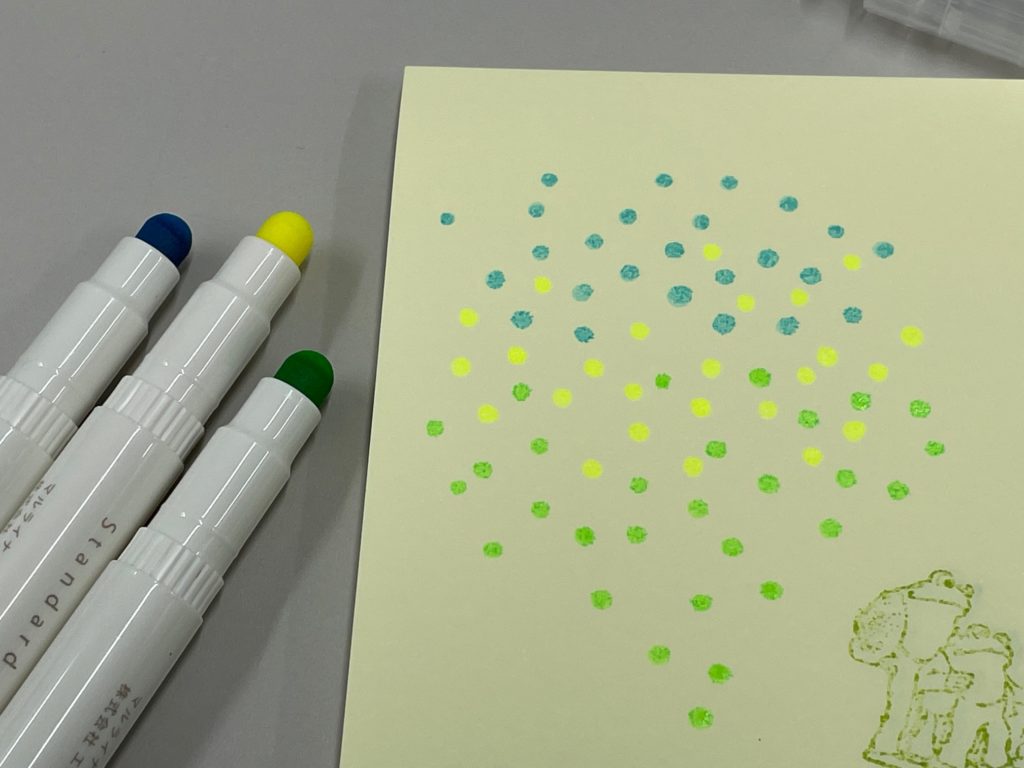 せっかくの丸いペンですから、ペン先をトントントンと、、かわいらしい「〇」がいい感じです!
