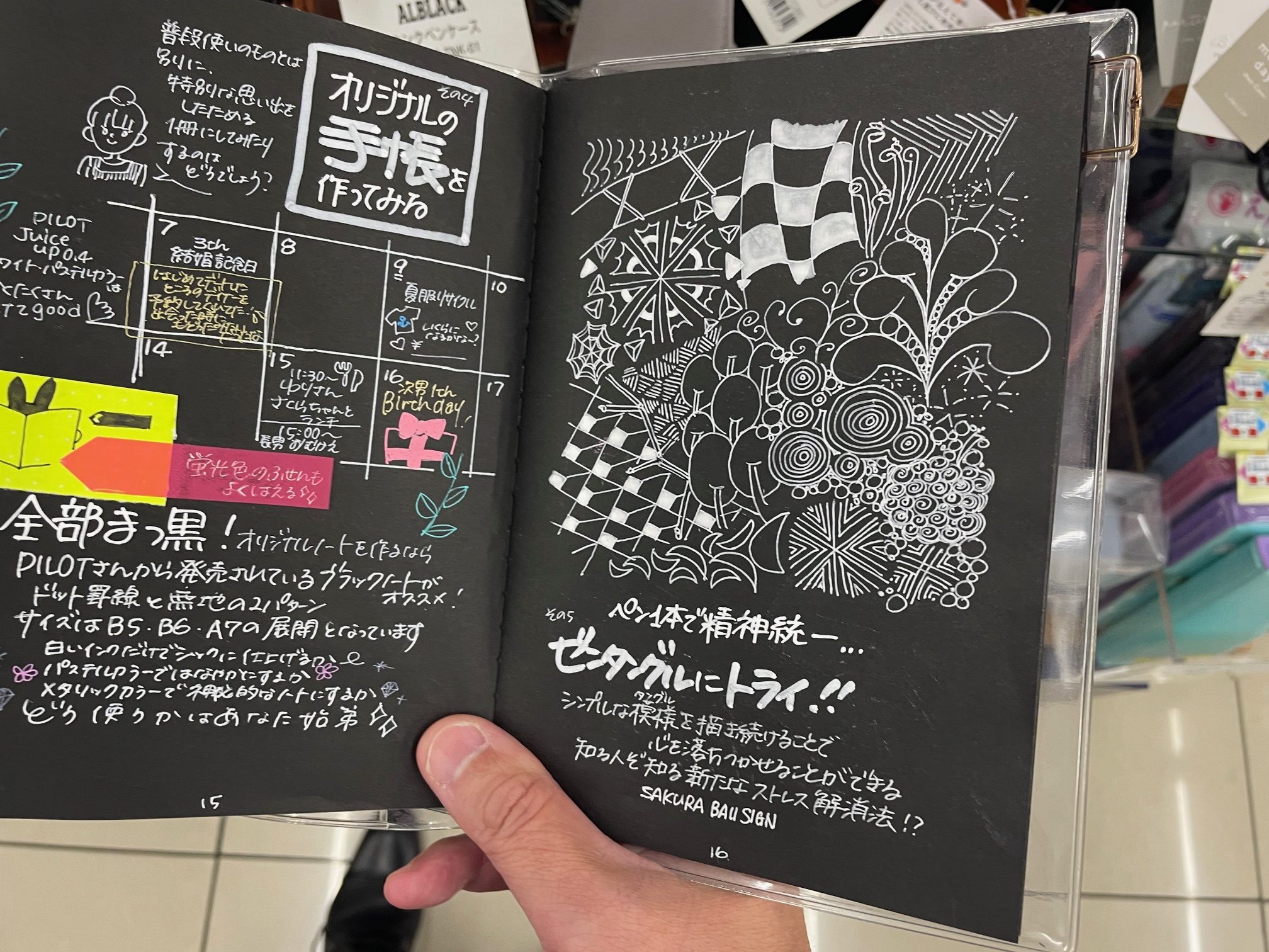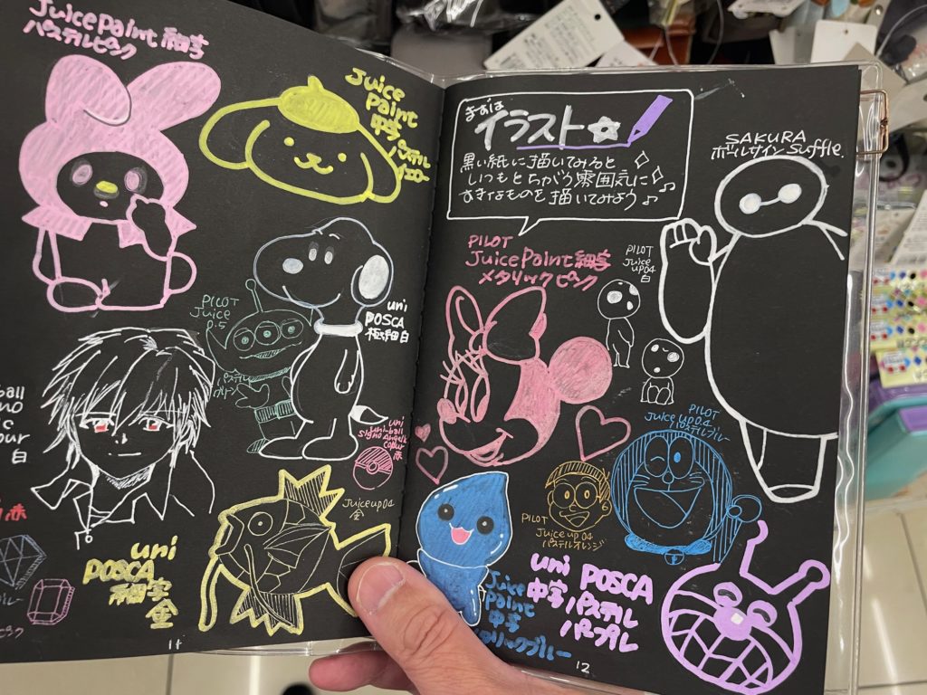 コチラが最終ページと表4(裏表紙の裏)。このシリーズですが色は全3色展開されています。クリエイティブブラックとアミュージンググリーンです。クリエイティブブラックが一番黒に近い、というか黒。アミュージンググリーンは黒板の色が近いです、黒板に描くことをイメージされたのでしょう。ナイスアイディアです!
