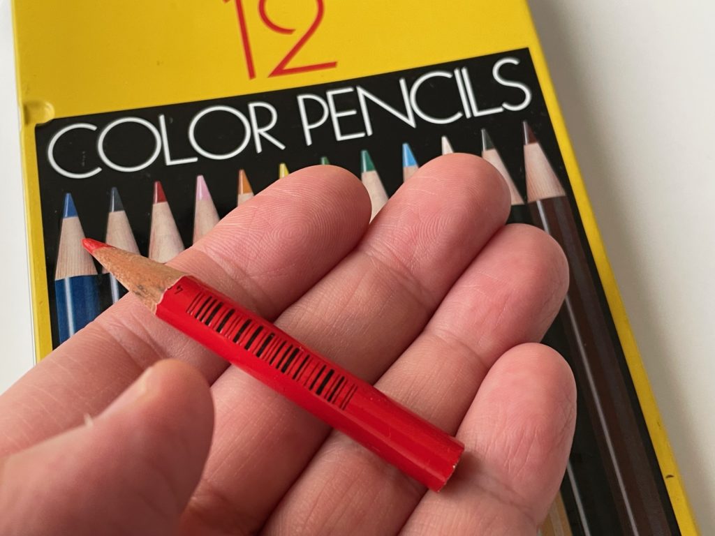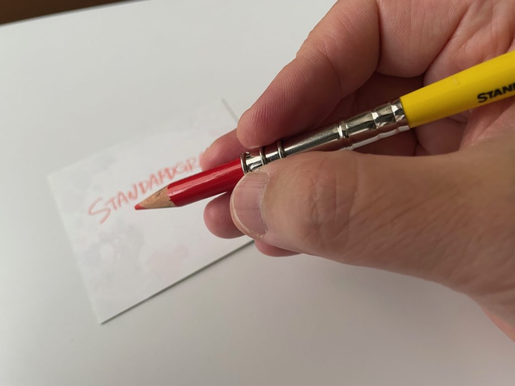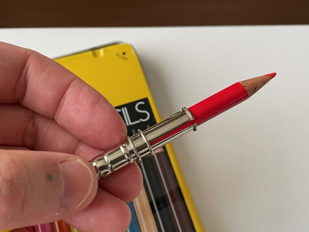 普段使いしているトンボ(Tombow)さんの12色の色鉛筆の赤色です。なぜか、赤だけめっちゃ短くなっている(笑)ので、こちらに装着しましょう!