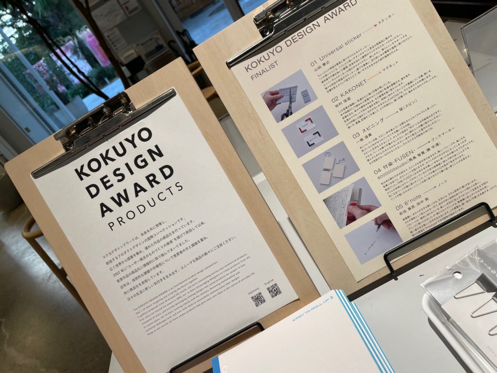 コクヨデザインアワードプロダクツ(KOKUYO DESIGN AWARD PRODUCTS)。コクヨさん主催のプロダクトデザインの国際コンペから、実際に製品化されたアイテムたちも紹介されていました。私も以前紹介させていただきました、カドが28個もある「カドケシ」もこのコンペから生まれたのですね! この日は私も過去アワード受賞アイテムをひとつ購入させていただきました!