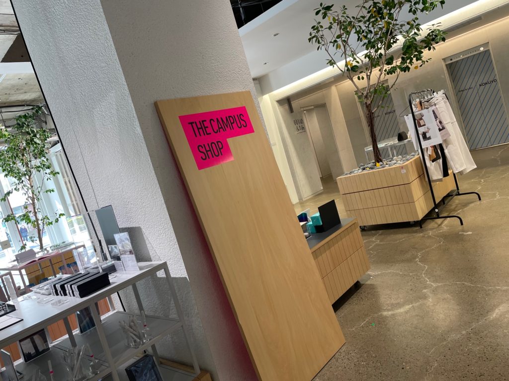 入店しました!どうやらここは、CAMPUS(キャンパス)という名のコクヨさんが運営している「働く・暮らす」の実験場の一角のようです。右手にはカフェがあります。本当はバシバシ写真を撮りたいのですが、初めてでどうしてよいかわからずおろおろどきどきしているので、よく撮れていないことはご容赦くださいませ。。