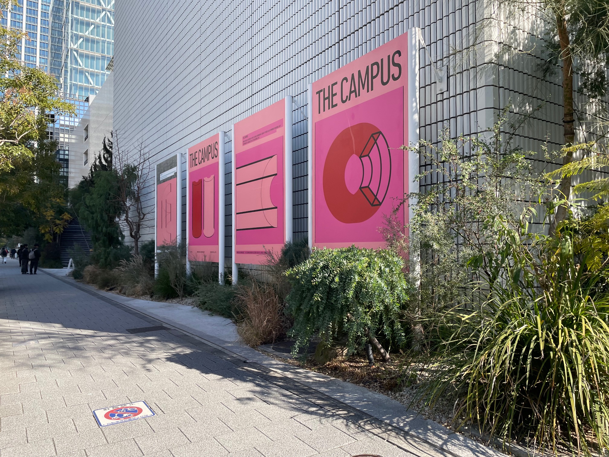 品川駅から徒歩約3分(港南口)、見えました!前方に4枚のかわいいピンクの看板が!早く信号機よ青になれ~!